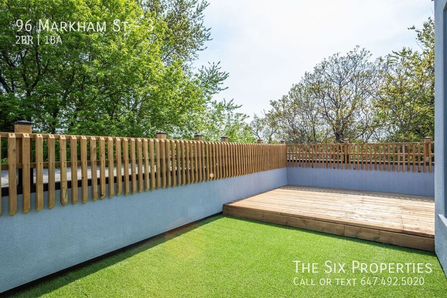96 Markham St, Toronto, ON, M6J 2G5 Large, bright 2 Bedroom Apartment in Trinity-Bellwoods / Queen West Available: March 1st 2026 Rent: $3,450 - All inclusive Includes: -Under professional property management -Two storey unit: main floor and upper -Newly updated apartment -Newer appliances -Dishwasher -1.5 Bathrooms -In suite washer/dryer -Hardwood floors -Central heating and air -2 Bedrooms: Bedroom 1: 8'2" x 8'4" and Bedroom 2: 8'5" x 9'2" -Spacious backyard -Private deck -Parking available -No smoking inside Minutes to: Trinity Bellwoods, shops, restaurants, amenities, U of T, George Brown, hospitals, Bloor Street, College Street, Queen Street, Kensington Market, Financial Core, Toronto Western, 24 hour Queen & Bathurst Streetcars
