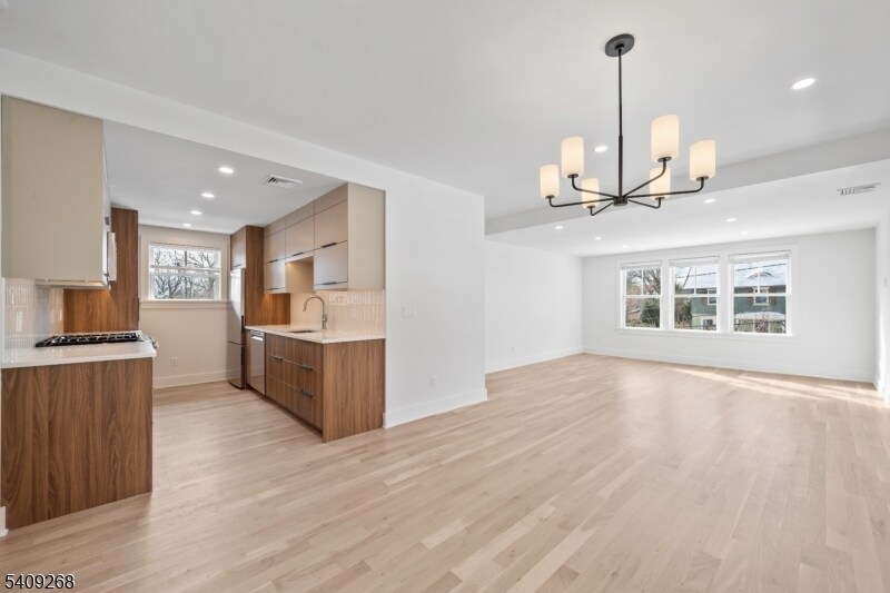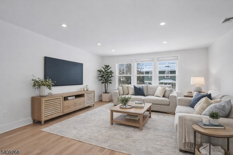 Beautifully styled, newly renovated designer apartment in perfect Upper Montclair location. One block from NYC train, bus and the shops, restaurants and services of Watchung Plaza. Across the street from neighborhood park. Private entrance leads to gracious open floor plan with large living room and dining area and stunning kitchen with all new appliances, cabinetry and quartz counters. Huge bright primary suite with large outfitted closets and gorgeous tile bath with quartz counters. Guest bedroom with large closet and a separate office nook. Hardwood floors throughout. In-unit laundry. Every detail has been carefully considered and addressed. One off-street parking spot included. Located in an owner-occupied three family home. Sorry no pets.