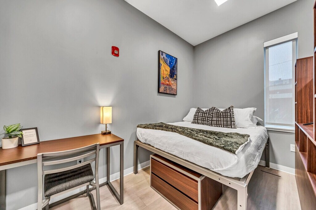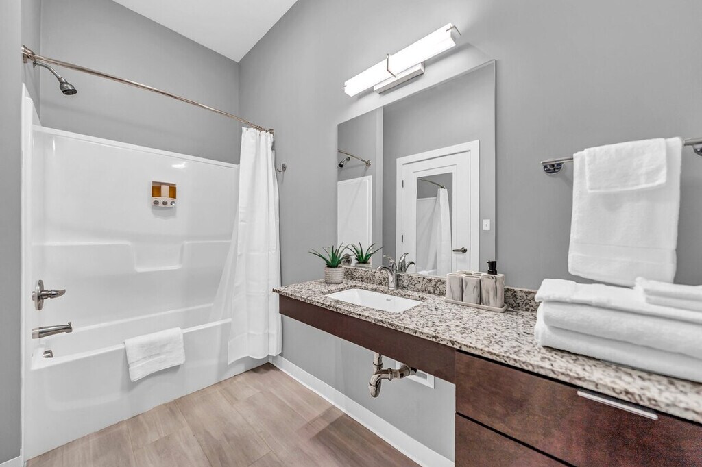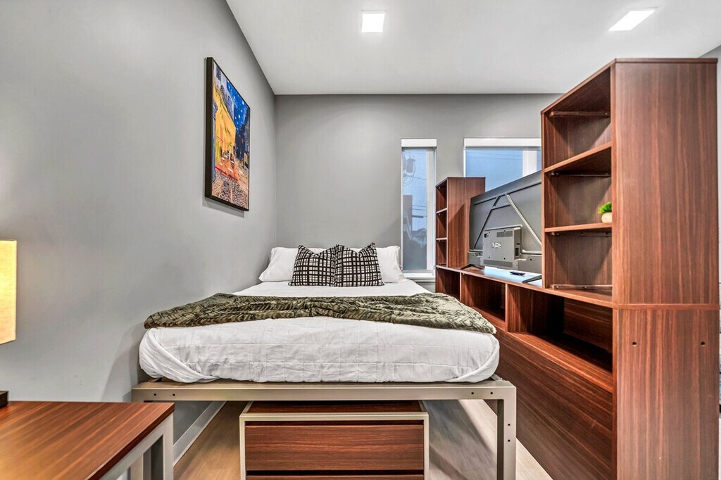 The advertised rate of $2,695/month is the lowest available price, based on a 1 month(s) stay with a move-in date of April 23, 2026. Rates vary depending on the duration of stay, season, and other parameters. For exact pricing and additional pricing components, please visit our website and enter your desired move-in and move-out dates. The rate is applicable when billed upfront; it can be higher if billed in multiple payments. Feel at home in this studio apartment located on the first floor of a luxury 5-story apartment complex in the heart of downtown Buffalo. This upscale apartment offers in-unit laundry, stainless steel appliances, a fully stocked kitchen, a large closet space, a 58" TV with Hulu and Disney+, a comfortable queen-size bed, a clean spacious bathroom, a bathtub, keyfob entrance, and blazing fast Wi-Fi. Pet-friendly accommodations are available with a pet washing station. Gated parking is available. Enjoy walkable access to the Buffalo Niagara Medical Campus, including Roswell Park, Buffalo General, and UB Medical School. Discover a vibrant community designed for connected living and convenience. The apartment community features a 24-hour fitness center, a rooftop terrace overlooking downtown Buffalo, valet trash pick-up, a gaming and VR room, blazing fast internet throughout the building, bicycle storage, a community rooftop kitchen, multiple collaborative workspaces, and a gorgeous resident lounge. Includes a private desk workspace. [SI]