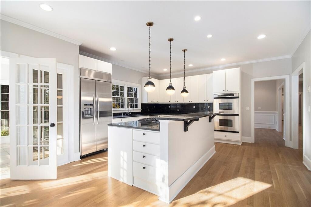 Experience refined luxury on a quiet North Buckhead/Sandy Springs cul-de-sac. Set on over an acre in the highly sought-after Riverwood International Charter district,this executive residence lives like a private estate—grand in scale yet designed for everyday comfort. A dramatic vaulted living room with a fireplace and a wall of windows introduces the home with elegance and abundant natural light. The flow continues into a formal dining room and a gourmet kitchen featuring rich wood cabinetry,high-end stainless steel appliances,granite countertops,and a generous eat-in area. Ten-plus-foot ceilings and gleaming hardwood floors enhance the sense of sophistication throughout. The main level offers a serene primary suite with a newly renovated,spa-inspired bath,along with a versatile flex room ideal for a nursery,home office,or study. The two-story great room opens through double French doors to a private backyard patio,creating a seamless connection between indoor and outdoor living. Upstairs,the home provides six spacious secondary bedrooms,five full bathrooms,and a media room—perfect for families,guests,or multigenerational living. The property sits on a beautifully wooded lot that feels peaceful and secluded while remaining close to everything Atlanta has to offer. With convenient access to Downtown,Midtown,Lenox,Westside,and the Perimeter,as well as the new Windsor Meadows Park/Greenspace,the location is exceptional. Neutral paint,new carpet,and a thoughtful layout make this large home both luxurious and practical. This is a residence that delivers presence,comfort,and timeless appeal—an opportunity to live in a space that truly feels like a modern palace. MLS ID 7717278