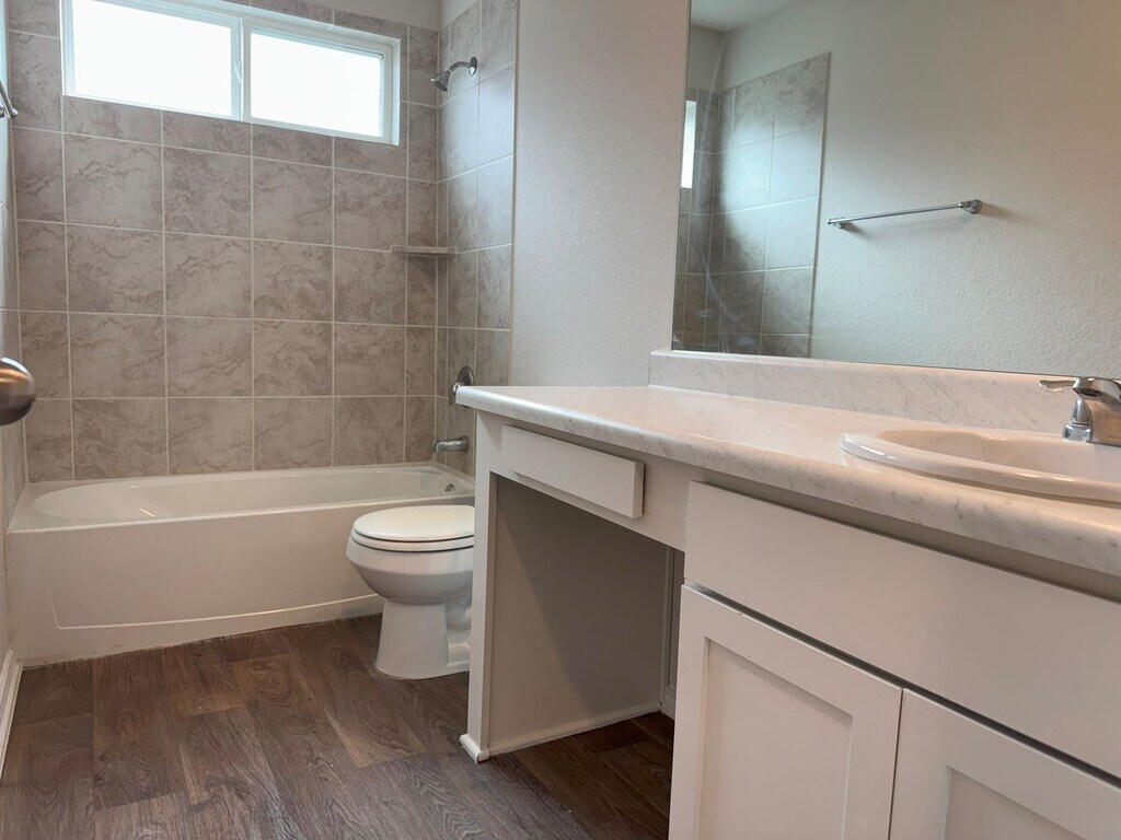 Welcome to 9603 Lowline Bridge. This stunning two-story home at The Wolters offers 2,530 sq. ft. of well-designed living space, featuring 4 bedrooms and 3 bathrooms. The inviting front porch welcomes you into a spacious foyer that flows into a large, open living area. Adjacent to the living room, the dining area seamlessly connects to the kitchen and leads to the backyard and a relaxing covered patio—perfect for outdoor enjoyment. The kitchen is equipped with a gas stove, stainless steel appliances, a breakfast bar, and elegant marble countertops. The living room boasts a beautiful marble TV surround with built-in shelves and overlooks the private backyard. A secondary bedroom and full bathroom are conveniently located on the first floor, and the garage connects directly to the laundry room and kitchen for easy access. Upstairs, you'll find additional bedrooms for added comfort. Situated on a peaceful greenbelt with no rear neighbors, this home provides privacy and tranquility. The community also offers an array of amenities, including an Olympic-sized pool, a gazebo with BBQ grills, tennis and basketball courts, a water park, and a playground—perfect for an active lifestyle and entertaining family and friends. Our Resident Benefit Package ($30/month) offers convenient services to help you stay on top of your home and financial needs such as air filter delivery, credit reporting, fraud alerts and more! Submit applications: