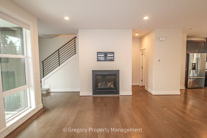 Newer luxury 4 Bed 3 Bath 2 car garage townhouse at The Landing in Desirable Downtown Bothell Location. Open concept floor plan, beautiful finishes! * Open floor plan with tons of natural light, hardwoods and beautiful designer fixtures throughout. * Fresh paint throughout. * Primary bedroom has oversized walk in closet and floor to ceiling windows. * The spa-inspired primary bath features quartz countertops, dual sinks, and oversized glass door shower with two shower heads. * 2 bedrooms upstairs w/hall bathroom. * Third bedroom on entry level with full bathroom makes for a perfect guest space or in home office. * Beautiful chef's Kitchen has tons of cabinets, quartz countertops, oversized island and all the appliances you need: gas range, microwave, refrigerator, dishwasher, and French door fridge. * Kitchen and dining transition into the living room and features a gas fireplace, 9' ceilings, floor to ceiling windows, and a balcony large enough for furniture and plants. * Laundry room located on entry level has newer W/D. * Large two car garage has additional overhead storage and opens to the entry with a convenient mud room for shoe and coat storage. * Just a few blocks to the heart of downtown Bothell, Bothell Landing, and Burke-Gilman trail. Volunteer Park is just across the street. * Easy 405 and Highway Access, close to transit lines making commuting a breeze. **Small Pets Considered with Approval. Presented by Gregory Property Management We do not accept Zillow applications. Please visit our website ** To schedule a tour Call our 24 hour SELF SHOWING HOTLINE 425. 217.3598. OR visit our web site Gregory Property Management dot com and click "schedule a showing" This property allows self guided viewing without an appointment. Contact for details.