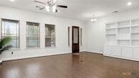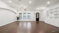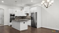 Luxury living awaits in this beautiful Phase 1 Town Creek townhome! Enter through a charming private courtyard and step inside to warm hardwood floors,soaring ceilings,built-in bookcases,and a bright kitchen featuring white cabinetry,gas cooking,granite countertops,stainless appliances,a walk-in pantry,and a convenient island. The spacious upstairs owner’s retreat offers true relaxation with a free-standing soaking tub,spa-style walk-in shower,and an impressive closet that feels like an extra room. Two additional 14x12 bedrooms and a versatile study/cubby provide flexible space for work or guests. Located in the heart of highly desirable Town Creek—just a short stroll to shops,restaurants,and downtown New Braunfels—this home delivers effortless,walkable living. Refrigerator,washer and dryer are included. SEE THIS ONE TODAY!