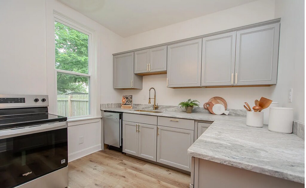 Come see this stylish, move-in ready 2-bedroom, 1-bath home offering 1,142 square feet of beautifully updated living space and a private backyard perfect for entertaining. Welcome guests from the spacious front porch with fantastic curb appeal into the inviting living room featuring a fireplace and custom feature wall. Enjoy new wide plank flooring, modern light fixtures, and custom millwork throughout the home. Down the hallway—with a charming sliding barn door—you’ll find a versatile dining room that can also serve as a home office. Large windows fill each room with natural light. The eat-in kitchen has been completely updated with new cabinetry, countertops, stainless steel appliances, fixtures, and a deep farmhouse sink. There’s plenty of space for a dining area and easy access to the laundry area. The primary bedroom features a stunning custom accent wall and a spacious closet with excellent storage. A remodeled full bath and a comfortable second bedroom complete the interior. Step outside to enjoy two separate patio areas—one directly off the back door and another perfect for a firepit. The private backyard offers a relaxing retreat with plenty of room to entertain. This home truly blends modern style with everyday comfort—schedule your showing today before it’s gone! Professionally managed by Kentuckiana Property Management. The tenant is responsible for all utilities and lawn care. Must have a decent credit history. Total household income must meet or exceed 3x rent. No open/current bankruptcy or foreclosure or owe previous landlord or apartment community.