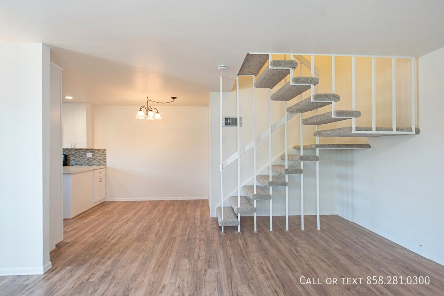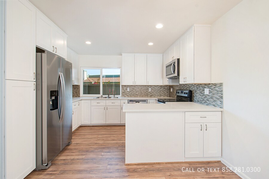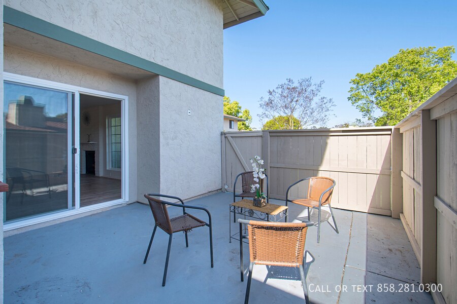 You must see this charming remodeled 2-story, 3 bedroom townhome. This home includes all late model stainless kitchen appliances, kitchen cabinets, Quartz counters, and a designer tile backsplash. Both bathrooms are also recently remodeled and feature new tile, vanities with Quartz countertops. Master bathroom has dual sinks. Large living room is complete with a cozy fireplace, newer windows, and newer paint throughout. Both floors feature stylish, low-maintenance wood-look laminate flooring. A spacious fenced patio area provides privacy and is great for entertaining or just relaxing outdoors. In-unit laundry and washer/dryer are included for resident's convenience! NO PETS, PLEASE. The unit includes 2 nearby, assigned parking spaces. Great location in the Mira Mesa/Miramar area. Close to Hourglass Community Park, San Diego Miramar College, Scripps Ranch High School, Lake Miramar, Shopping, MCAS Miramar, and I15 access. Community amenities include access to gated pool facilities