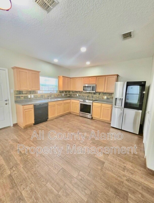 Welcome to this well-maintained 3-bedroom, 2-bathroom home offering approximately 1,500 square feet of comfortable living space in a desirable community. From the moment you arrive, you’ll appreciate the inviting curb appeal, private driveway, and attached garage. Step inside to a bright and open layout featuring beautiful wood-like flooring throughout the main living areas—both stylish and easy to maintain. The spacious living room flows seamlessly into the kitchen, which comes fully equipped with a refrigerator, flat-top stove, microwave, dishwasher, and garbage disposal—perfect for everyday living and entertaining. The primary suite offers a relaxing retreat with plenty of natural light, a large bathroom with dual vanities, soaking tub/shower combo, and generous closet space. Secondary bedrooms are well-sized with ceiling fans and ample storage, making them ideal for family, guests, or a home office. Enjoy the convenience of an in-home laundry area with washer and dryer included—saving you time and adding extra value. Additional features include central air conditioning, modern fixtures, and essential safety features for peace of mind. Step outside to a private fenced backyard with a patio area—perfect for relaxing, entertaining, or enjoying the outdoors. The spacious garage with automatic opener and extra storage completes the package. This home is clean, updated, and ready for immediate move-in—offering comfort, convenience, and great value. Don’t miss out—schedule your showing today!