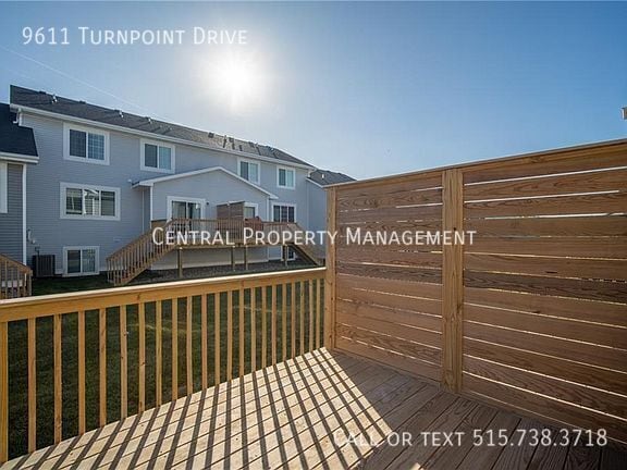 Spacious 3-Bedroom, 2.5-Bath Townhome on the West Des Moines/Waukee Border Welcome to this beautiful 3-bedroom, 2.5-bath townhome located on the edge of West Des Moines and Waukee, just minutes from local restaurants, shopping, and scenic bike paths. This home features a 2-stall attached garage, granite countertops, stainless steel appliances, and a gas fireplace in the living room for cozy evenings. Enjoy outdoor living with a large deck just off the dining area--perfect for entertaining or relaxing. The main floor also includes a convenient half bath. Upstairs, you'll find a spacious primary suite with a walk-in closet and a private ensuite bathroom featuring a large vanity and walk-in shower. Two additional bedrooms and a laundry area complete the upper level. This home combines comfort, style, and a prime location