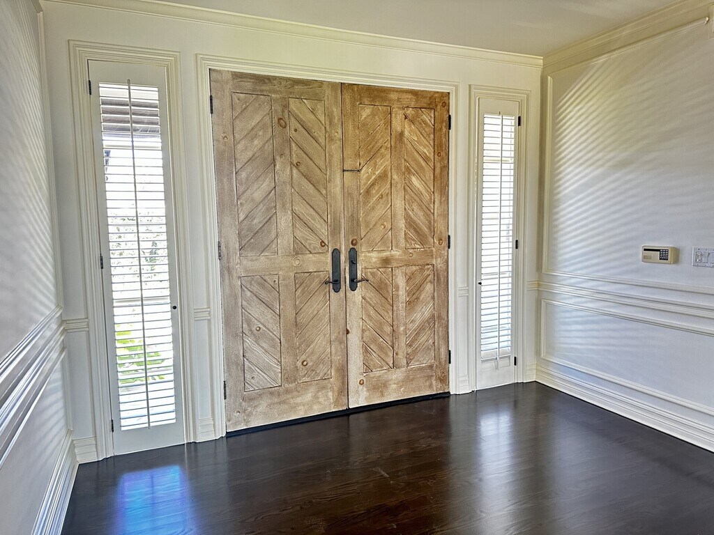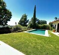 Beautiful walled and gated villa with grassy lawn, sparkling pool and expansive canyon vista. The dramatic entry leads to a formal dining room for gathering with family or friends, the Carrera marble center island chef's kitchen, elegant living room and family room for entertaining and relaxing. Gorgeous dark hardwood floors grace the interior of the home, creating an atmosphere of refinement. The main bedroom wing features a sophisticated master suite and two additional well-proportioned bedrooms sharing a tastefully redone bath. A private fourth bedroom or maid's quarters is located off the kitchen. Enjoy the ease of single story living on a quiet cul de sac. Feel like you are living in the European countryside. Includes extra refrigerator in garage, washer and dryer, Ring doorbell and cameras present. Rental Terms: Annual: $11,900 Per Month