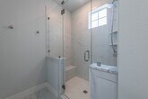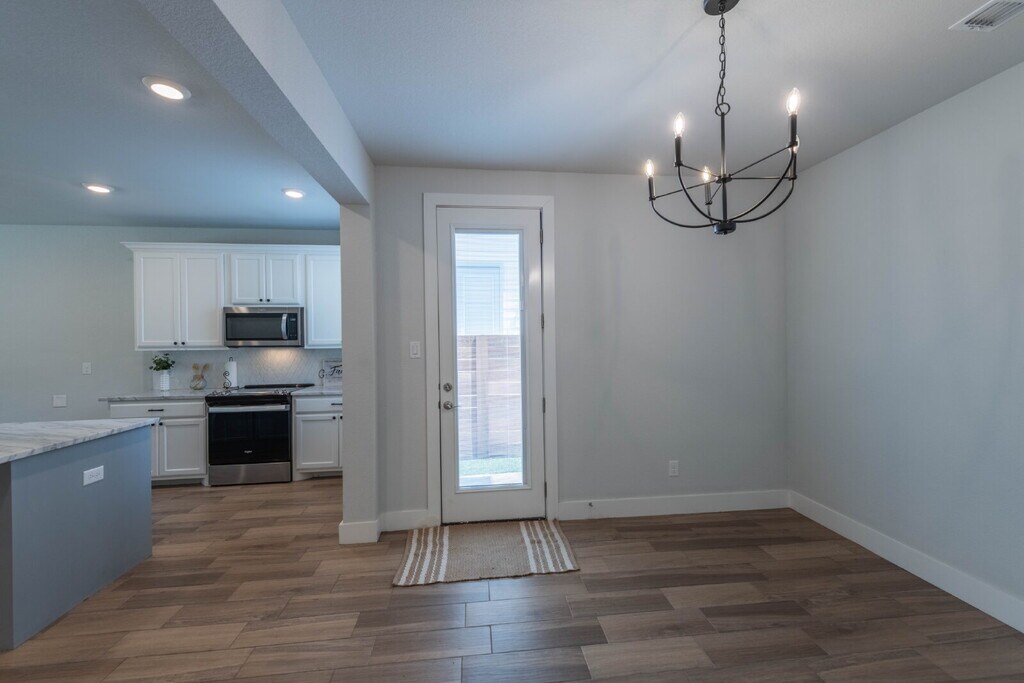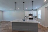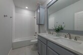 Welcome to this beautifully finished 3-bedroom, 2.5-bathroom home offering both style and function in a well-designed floorplan. Step inside to find a light and bright interior featuring wood-look tile floors, designer lighting, and a neutral color palette that complements any decor. The kitchen is a true centerpiece with elegant marble-look countertops, a spacious island with built-in sink, stainless steel appliances, and ample cabinetry including a bonus built-in buffet space, perfect for entertaining or storage. Pendant lighting and an open layout make this kitchen both practical and inviting. Upstairs, the spacious bedrooms provide comfort and privacy, while the bathrooms feature sleek finishes, dual vanities, and a modern tile surround in the shower tub combo. The primary suite offers a peaceful retreat with plenty of natural light and a spa-inspired en suite. Enjoy a small fenced outdoor area ideal for pets, plants, or simply relaxing. Whether you're looking for a low-maintenance lifestyle or a move-in-ready space with tasteful upgrades, this home delivers. Don't miss your opportunity to live in this stylish, thoughtfully updated home.
