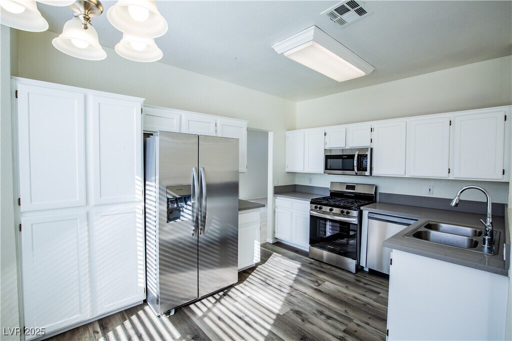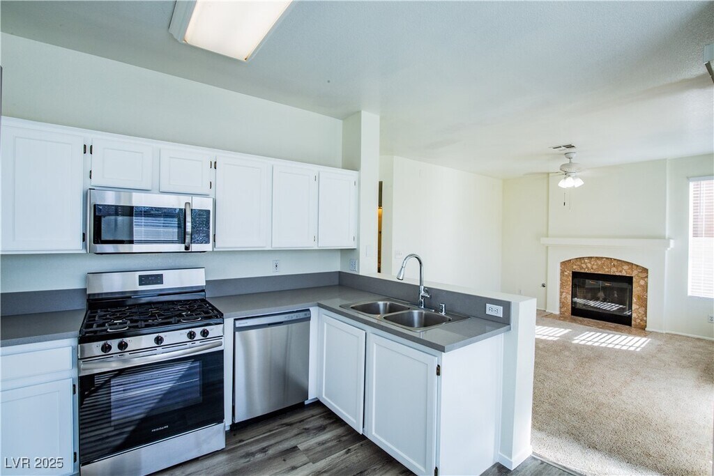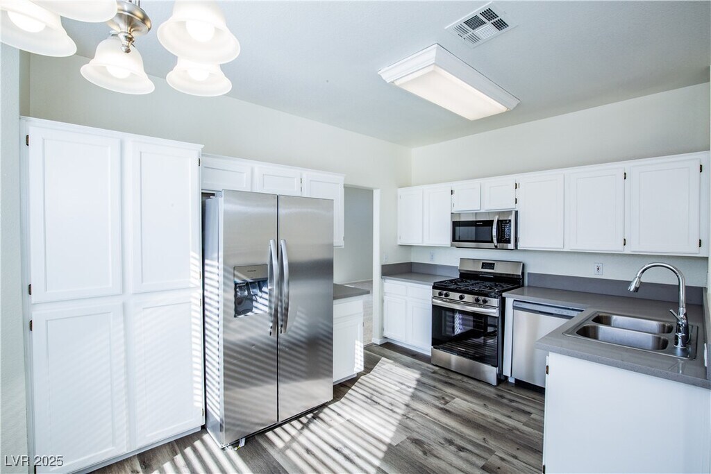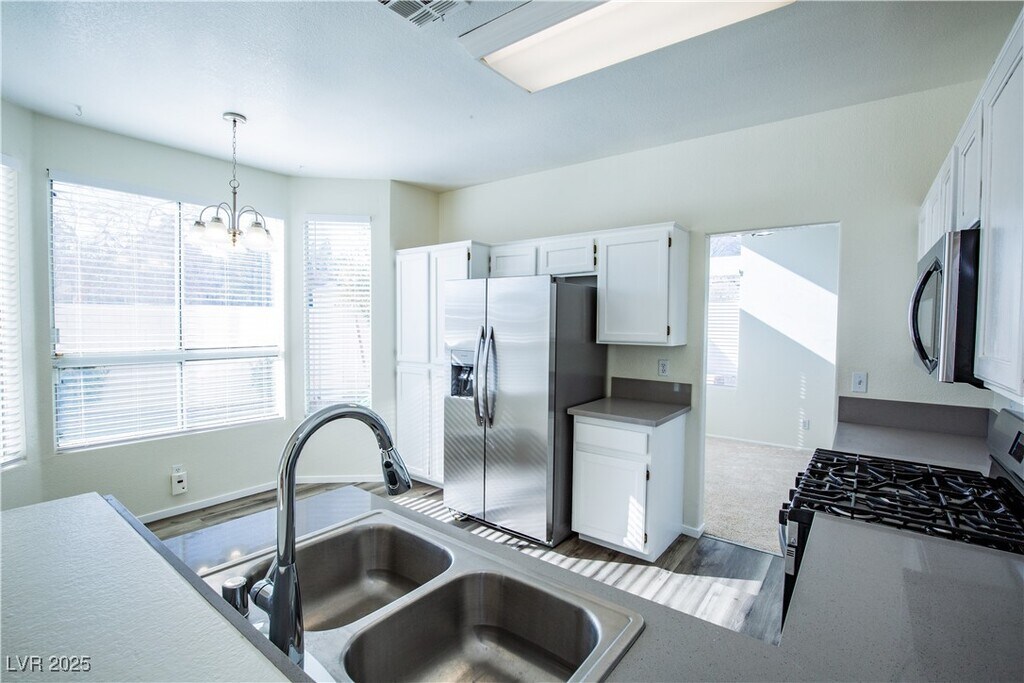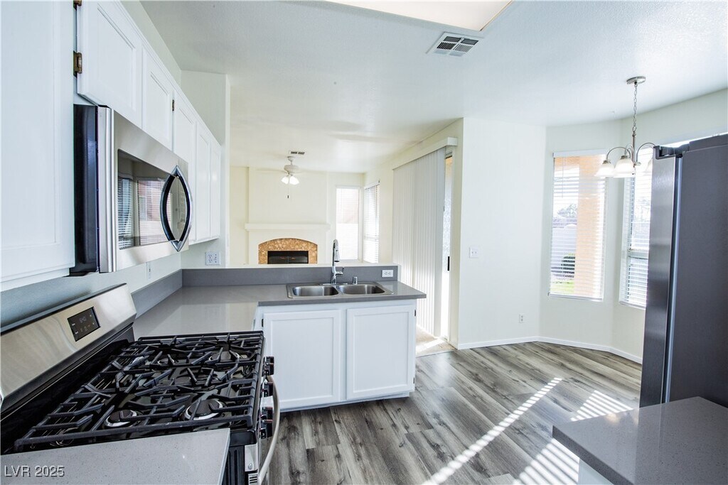 Welcome to your dream home! Newly updated! This charming 4-bedroom, 2.5-bath residence combines comfort and style in every detail. The modern kitchen is a culinary delight, featuring elegant pot shelves, durable tile flooring, a cozy breakfast nook, a convenient pantry, and all essential appliances included. Relax in the inviting great room with a vaulted ceiling and a warm fireplace – perfect for gatherings and cozy nights in. The spacious primary bedroom offers a peaceful retreat with a large walk-in closet, while the en-suite bathroom pampers you with dual sinks, a garden tub, and a separate shower. Outside, lush landscaping creates a serene oasis, complemented by an automatic 3-car garage for effortless convenience. Situated close to schools, shopping centers, and parks, this home offers an ideal location with even more delightful features to discover!