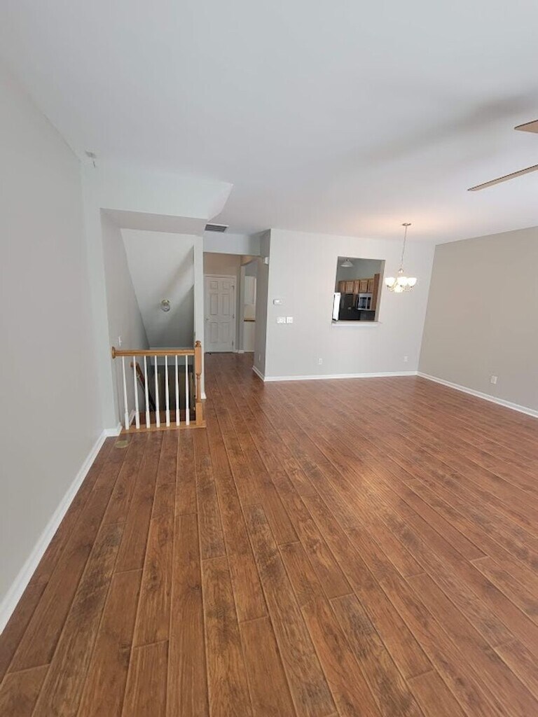 Very spacious townhouse walking distance to restaurants and shopping! This unit has large flex room on 1st floor, this room can be office or study, 1st floor has laundry room with washer and dryer, half bath on 1st level, 2nd level has huge living and dining area with gas fireplace, kitchen has SS appliances, lots of storage, half bath, walk out to large deck overlooking wooded area, 3rd level has primary bedroom with attached full bathroom, spacious 2nd bedroom, main full bathroom, one car garage, NO PETS ALLOWED! READY FOR IMMEDIATE OCCUPANCY, No Smoking. No Assistance Programs, $75/adult application fee; $125 lease prep fee