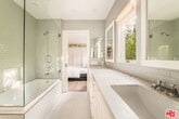 Prime Beverlywood single-story Traditional with 4 bedrooms and 2.5 baths on a quiet, pedestrian-friendly street. Updated and move-in ready, this light-filled home blends timeless character with modern functionality. Interiors feature wide-plank hardwood floors, abundant natural light, and a classic fireplace. The open kitchen and family room include a large center island, professional range with a statement hood, stainless steel appliances, farmhouse sink, skylight, and French doors that open to a private patio, ideal for entertaining or al fresco dining. The spacious primary suite offers direct patio access and a beautifully remodeled spa-like bath. Secondary bedrooms are generously sized, plus a dedicated den/office and separate laundry room. Additional highlights include central AC/heat, two-car driveway parking, and a private backyard surrounded by mature greenery. Ideally located near shopping and dining. MLS# 26645059