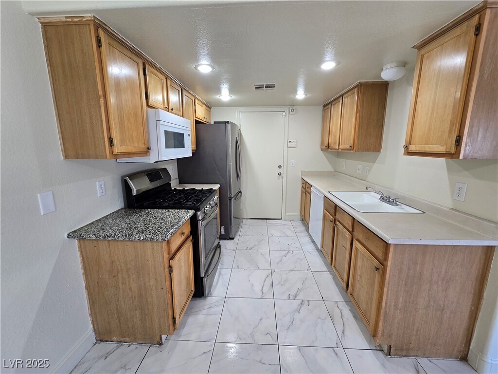 Welcome to one of Silverado Ranch’s hidden gems! Nestled in a charming, close-knit community where neighbors become lifelong friends, this delightful 3-bedroom, 3-bath home offers warmth, comfort, and room to thrive. The open and inviting layout flows beautifully into the outdoor living area, perfect for poolside gatherings under the stars or a quiet evening retreat. Enjoy the thoughtful two-story design—with all bedrooms privately located upstairs and your main living space downstairs, entertaining feels effortless and organized. Whether you're sipping morning coffee by the pool or hosting a weekend BBQ, this home offers the kind of outdoor lifestyle Las Vegas is famous for. With a cozy fireplace, plenty of natural light, and just the right amount of space, this residence is ideal for those looking to create lasting memories. Schedule your tour today and see why this sweet spot is more than just a house—it’s a place to call home.