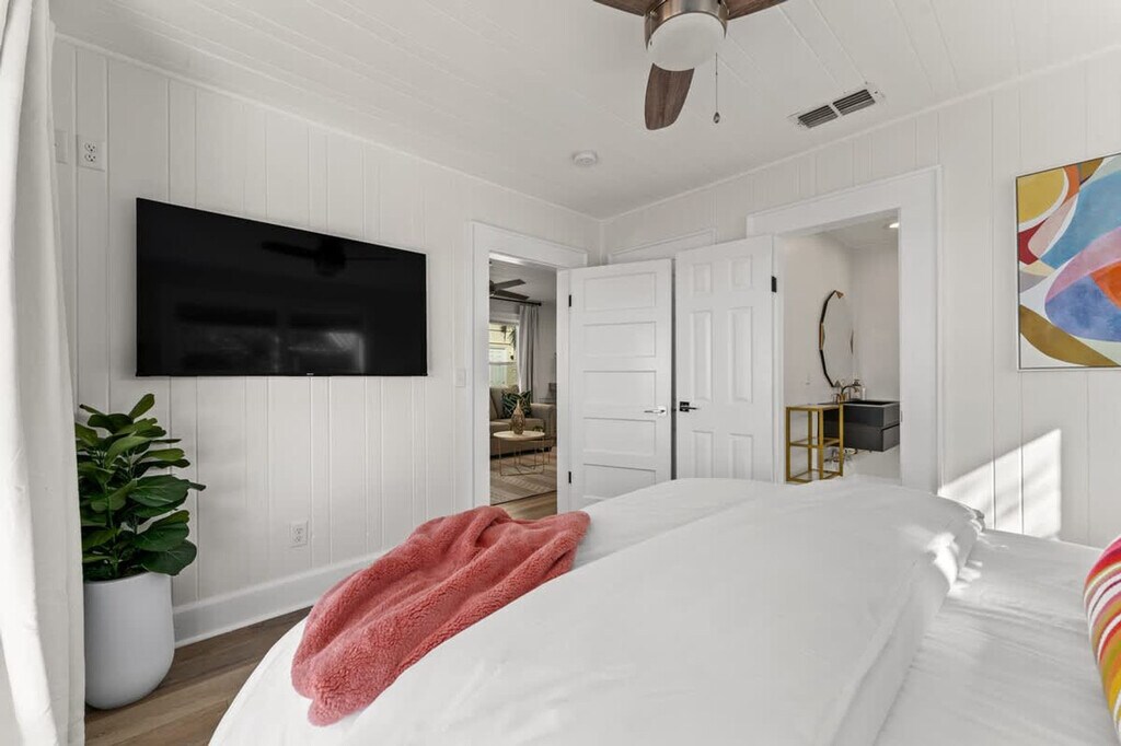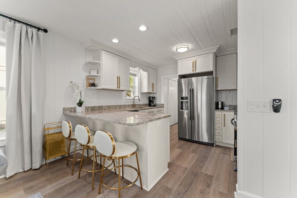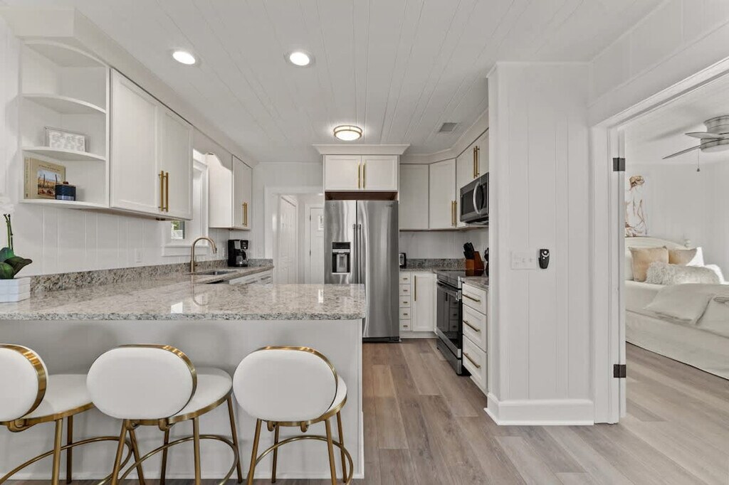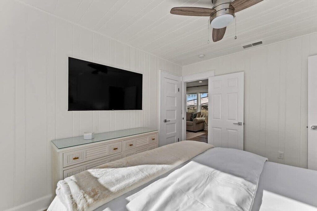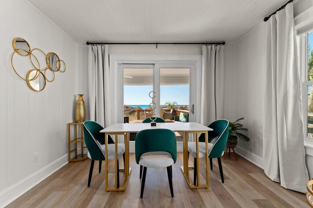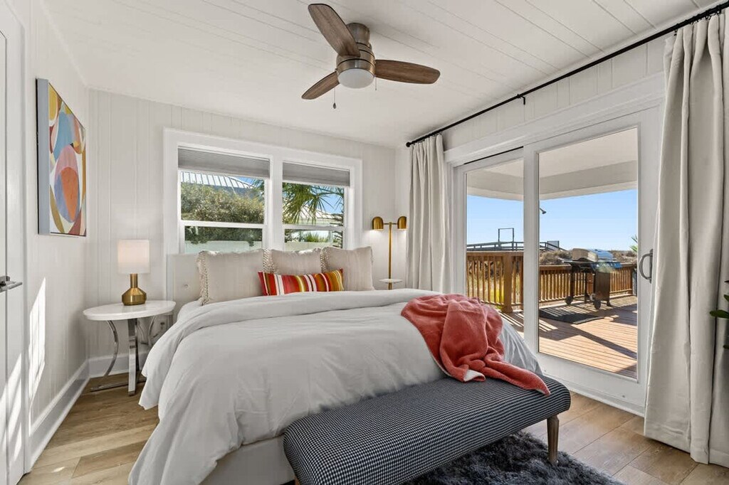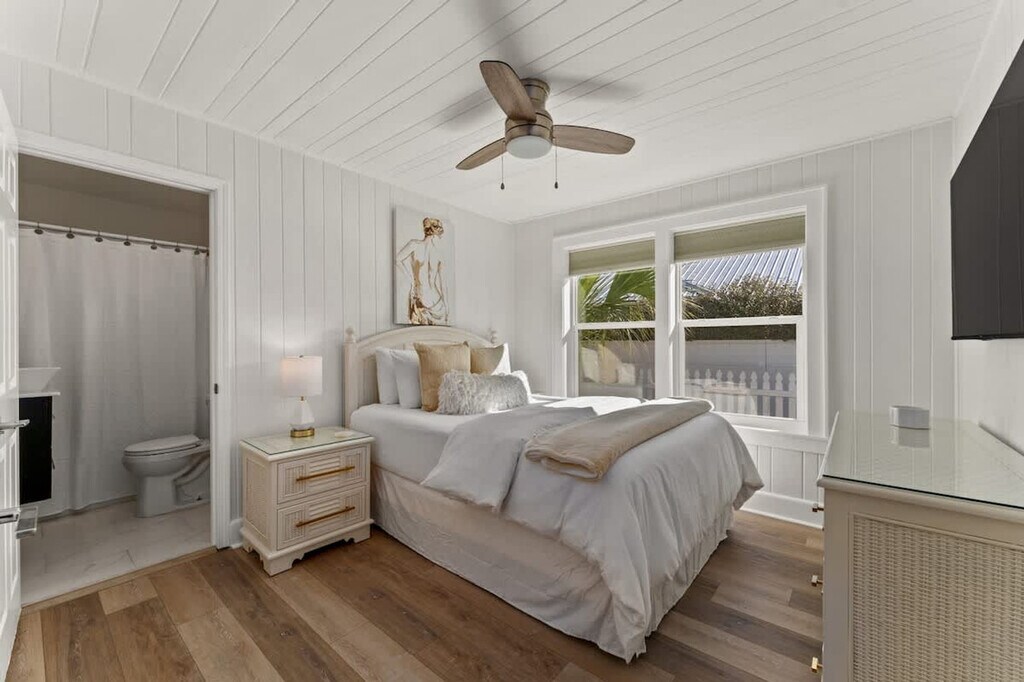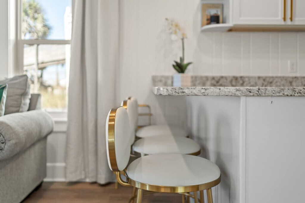 Feel at home in this fully renovated 2-bedroom, 2-bath cottage perched directly on the sugary-sand shoreline of East Panama City Beach, ideal for gatherings of up to six guests. Indulge in upscale Gulf-front living with breathtaking ocean views from both the expansive deck and the primary bedroom. Inside, you’ll find stylish finishes, plush bedding, Smart TVs in every room, and a well-appointed kitchenette and living space. The home also features thoughtful extras like beach chairs with built-in umbrellas, a wagon for gear, and upscale linens and bath toiletries. Step directly from your living area onto the sand and enjoy private beach access, or unwind on the deck with a glass of wine as the waves roll in. Private parking is available for two vehicles. With a prime location close to Panama City Beach’s best dining, shopping, and coastal attractions, this cottage invites you to experience effortless luxury by the sea. Quiet hours are between 11 PM and 7 AM. Registration Number: 71020 [SI]