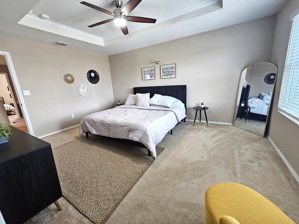 Property Id: 2440417 Beautifully upgraded 4 bedroom, 2.5 bath home in Silver Canyon offering 1,813 sq ft, a game room, and exceptional indoor/outdoor living. Built in 2019, this home features an open-concept layout with a spacious living room, electric fireplace, dual ceiling fans, and a large kitchen with abundant counter space, cabinetry, and stainless steel appliances. The dining area is centrally located with a modern accent wall and clear sightlines to both kitchen and living space. Upstairs includes all bedrooms, a versatile game room, and a functional laundry room with washer/dryer and built-in ironing station. The primary suite offers a large bedroom, dual vanities, oversized walk-in shower, and a generous walk-in closet. Step outside to a standout backyard setup with a large covered patio, bar-top seating, extended concrete, fire pit area with solar lighting, and a fully fenced yard. This home includes premium upgrades not commonly found in the area: Vivint security system with cameras, smart keypad entry, WiFi garage opener, Nest thermostat, solar screens, exterior lighting, gutters, and full stone facade. 2-car garage with epoxy flooring, extra storage space, and storage nook. Flexible furnishing options available, including sofa, 75" TV, arcade game, foosball table, and optional home gym. Prime location: 10-15 min to SeaWorld, 12-18 min to La Cantera & Fiesta Texas, 4 min to shopping and Government Canyon. Minimum 12-month lease. No pets. No smoking. Limited-time special: choose 30% off first year of Vivint service or $250 move-in credit. Lease by March 31 for move-in by May 1, 2026. Professionally managed with responsive maintenance.