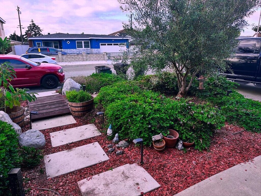 Nestled in Little Saigon in the community of Garden Grove, just 20 minutes from the beach and a 15-minute drive from Disneyland, this recently renovated eco friendly home, offers an unparalleled blend of modern luxury, thoughtful design, and prime location. Available for move-in on December 1st, this stunning home is perfectly situated near vibrant shopping districts and an array of dining options, making it an ideal retreat for those seeking both convenience and a sophisticated lifestyle. Step inside your red Dutch door to discover an open-concept layout that seamlessly connects expansive living spaces, creating an inviting ambiance perfect for entertaining or relaxed family living. At the heart of this home lies a gourmet kitchen that will captivate any culinary enthusiast. Anchored by a breathtaking 10-square-foot quartz island, the kitchen boasts custom cabinetry, a spacious pantry with convenient pullout drawers, and top-of-the-line appliances, including a six-burner Viking stove with a full-size griddle and a double oven with pot filler ideal for crafting everything from intimate dinners to lavish feasts. The kitchen flows effortlessly into the airy living and dining areas, where rich wood flooring adds warmth to the light-filled space. The primary bedroom, featuring a spa-inspired ensuite bathroom that exudes luxury and tranquility. Indulge in the expansive walk-in shower, equipped with three separate showerheads for a customizable, rejuvenating experience, enhanced by a stylish shiplap accent wall that adds a touch of rustic charm. Generously sized closets in every bedroom provide abundant storage, ensuring a clutter-free and organized lifestyle. Designed with both sustainability and convenience in mind, this eco-conscious home is equipped with solar panels for energy efficiency, low water usage and low maintenance front and backyard, and a tankless water heater that delivers an endless supply of hot water. For added ease, the home includes a washer, dryer, refrigerator, and microwave, making your move-in seamless. A dedicated laundry room, complete with built-in mudroom lockers, offers practical storage and organization for busy households. Freshly painted interiors and newly installed laminate flooring in the bedrooms, to be completed prior to move-in, ensure a pristine, move-in-ready environment. Outside, the property continues to impress with a detached garage featuring built-in shelving for optimal organization and a large dog run in the spacious backyard, perfect for pet owners seeking a secure an expansive area for their furry companions.