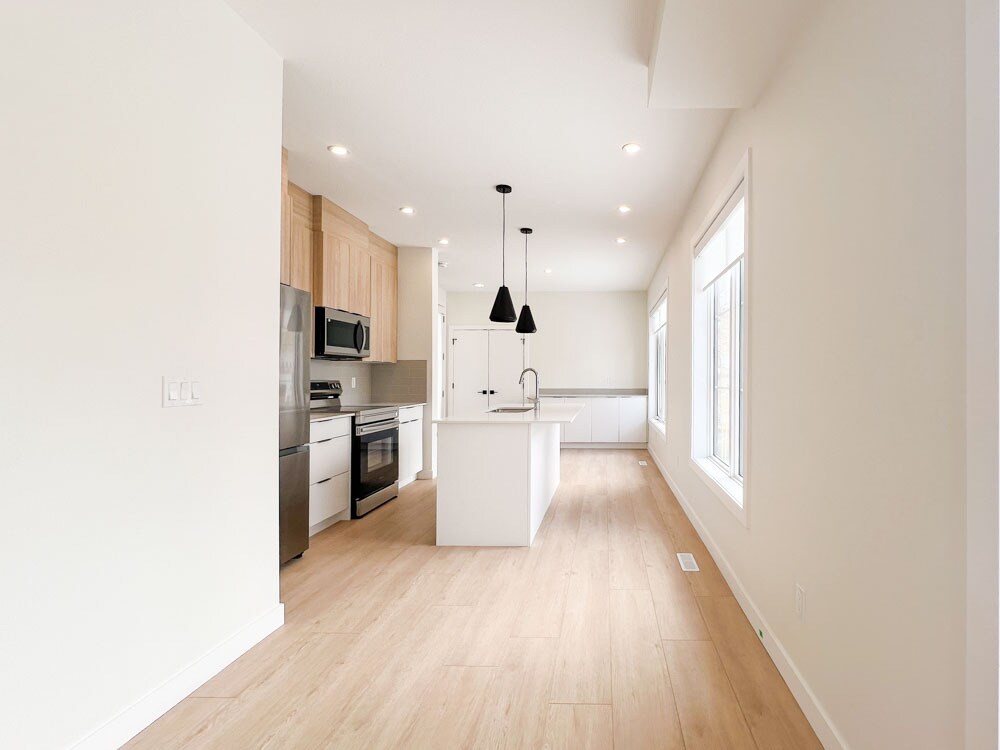 Be the First to Call This Brand-New 3-Bedroom Townhome Home! Step into modern comfort and convenience with this bright, executive-style townhome—perfect for professionals, small families or couples seeking a stylish, low-maintenance lifestyle in a desirable neighborhood. Designed with an open-concept layout, this home features luxury vinyl plank flooring, large sun-filled windows, and spacious living areas ideal for both relaxing and entertaining. The contemporary kitchen is a standout, complete with stainless steel appliances, sleek quartz countertops, and a functional center island—perfect for cooking and gathering. Upstairs, you'll find three generously sized bedrooms, including a primary suite with a private 3-piece ensuite. Enjoy the added convenience of second-floor laundry making everyday living effortless. Separate private entrance and a single detached garage! Landscape Upkeep and Snow Removal all included! Location, location, location - amenities, parks, and nearby shops within walking distance. Easy access to Future LRT, Yellowhead, Anthony Henday, Whitemud and a quick 10 MINs to downtown YEG & WEM Drop-in Viewing Hours Wednesday's 5 - 7pm Saturday's 11 am -1pm Or by appointment only - Quick Occupancy Available - Utilities Not Included - Utilities are the responsibility of the Tenant 3 Floorplans to choose from: Unit 3 - 1203 sq.ft $1995/month Unit 2 - 1146 sq,ft $2045/month Unit 1 - 1096 sq.ft $2095/month —--------------------------------------------------------------------------------------------- Move-in Bonus: $500 of First Full Month Rent*. * Limited Time Offer: Valid on Approved Candidates. Incentive will be applied to the first full month's rent. Based on a 12 month lease. —--------------------------------------------------------------------------------------------- - The lease is for 1 year + - The rental deposit is one month's rent - Pets can be considered for a monthly fee - Absolutely no smoking on the property of any kind - A credit check is required upon application - The unit is Unfurnished - Street Parking - COMPLETELY SEPARATE with its own entrance, washer/dryer, furnace, electrical panel and hot water tank. Glenwood Luxury Tri-plex