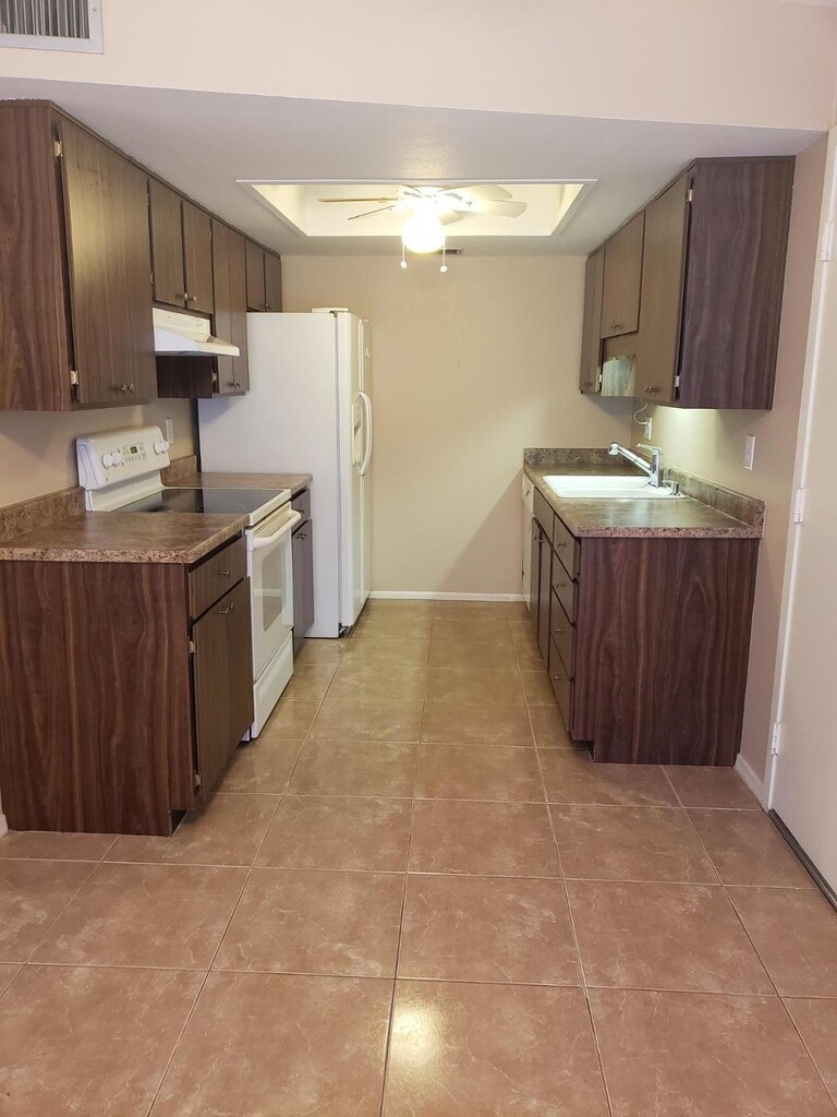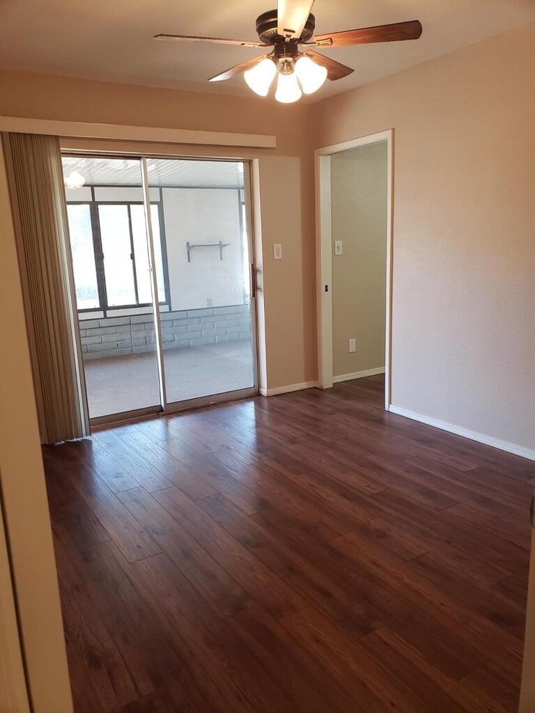 55+ Community,MUST be 55 years old to rent. Home in Peoria offers 2 bedrooms,living room,den,eat in area,2 Baths and fully enclosed patio that is the length of the home! Private yard is fully fenced with block fencing. Easy care desert landscaping front & rear. Wood laminate floors throughout & tile in kitchen & baths. Neutral colors,ceiling fans. Light & Bright,great floor plan. Lots of storage space,walk-in closet in master bedroom. Lanai with indoor/outdoor carpet and is a true extension of living space to this beautiful property. One car extended length garage. All appliances are included for your convenience. You will love this home.OWNER/AGENT. Renters Insurance Required with Rider if pet(s).