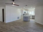 Owner will entertain a 12-month or 24-month lease - prefers 24-months. Enjoy an open-concept layout where the family room opens to a screened lanai overlooking a private,fenced backyard—ideal for relaxing or hosting guests. The updated kitchen boasts stainless steel appliances,white cabinets,solid-surface counters,and a large island perfect for meal prep and gathering. This home includes three spacious bedrooms and two bathrooms,with one bedroom offering direct access to the screened lanai for added convenience. A two-car garage and hurricane shutters complete the package. MLS# TB8475604
