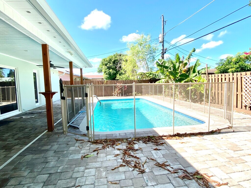 Welcome to this Modern feel throughout Move-In Ready Pool Home! The house contains 3 bedrooms and 2 bathrooms, including a big car garage. It is comprised with a dining room, a living room, the heart of the home featuring a kitchen equipped with sleek stainless steel appliances, contemporary cabinetry, and plenty of counter space for cooking and entertaining. Enjoy the convenience of a full-size side-by-side washer and dryer. The home is located in a friendly family neighborhood in Sunrise with no association approval! This lovely abode is magnificent for housing family and friends. The backyard offers privacy and is the perfect setting for outdoor gatherings or weekend BBQs. This ideal location is just minutes from top-rated schools, hospitals, conveniently located near Sawgrass and Broward Mall minutes away from I-595 connection to all major highways! The backyard has mango and banana trees that bear fruit every year, and the front yard has coconut trees. Brings the joy of a bountiful harvest every year. Pool service and landscape included in the rent. Background check ,680+ FICO score required. Pay 2 months security deposit and 1 month rent to move in .Please note Tenant pays for Electricity and Water. One small nice pet only .no smoking, Property is being rented As-Is. Please contact me for additional Private Tour days and hours. (Espanol and English) 305-Roger —244 please—5968 Thanks!