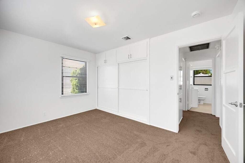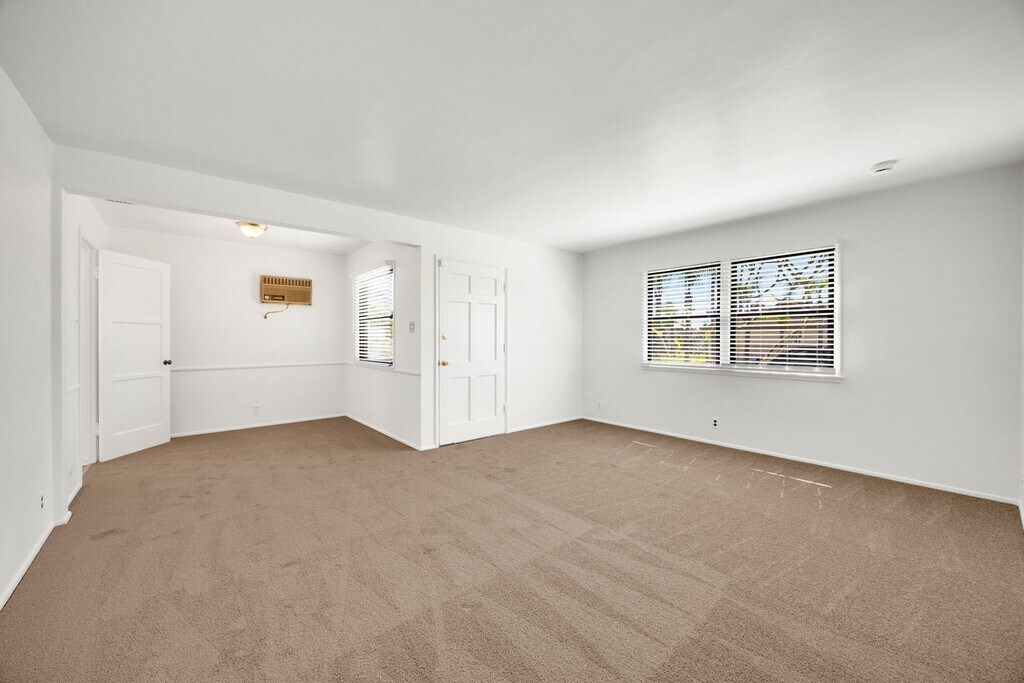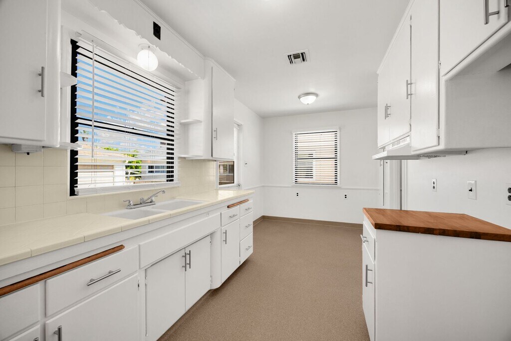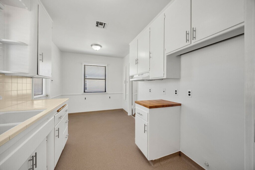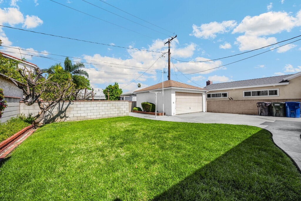 Near 605 and 5 Freeways, this adorable 2-bedroom, 1-bathroom home located in Pico Rivera near Birney Tech Academy Elementary. The front porch provides entry into the home, leading into the living room. The home flows into the kitchen with white cabinetry and wooden countertops. The kitchen area also includes an additional utility sink and washer hookup located nearby. Both bedrooms include closets equipped with white sliding doors and additional storage above. The property features a large fenced backyard and a detached two-car garage with an electric dryer hookup. Landscaping services are included. Professionally cleaned. Move-in ready.