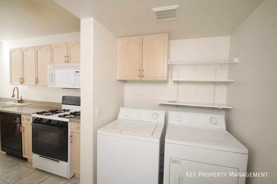 Spacious townhome located in the desirable Silverado Ranch area! Features brand new carpet, an inviting kitchen with a breakfast bar and all appliances included, and a private gated courtyard. Enjoy the convenience of a one-car garage and the benefits of a gated community with a sparkling pool. Comfort, style, and location all in one great home! Community Pool Gated Community
