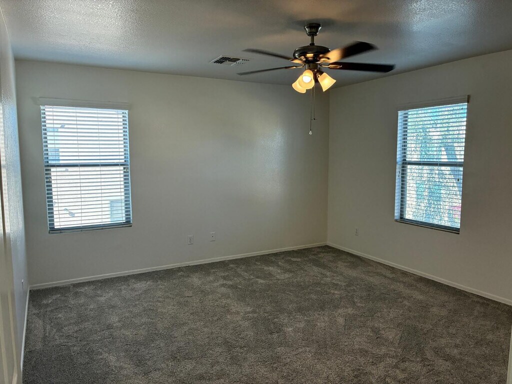 Beautiful 3-bedroom,2.5-bath home in Madison Estates offering 1,401 sq ft of well designed living space. The main level features designer tile flooring,an open great room and dining area,and a convenient kitchen with refrigerator and microwave included,plus a guest half bath. All bedrooms are upstairs along with two full baths and the laundry room. The primary suite includes dual sinks and a walk in closet. Additional features include ceiling fans,tile roof,dual pane windows,block fencing,covered patio,low maintenance desert landscaping,and a two car attached garage with opener. HOA maintains the front yard. Located in a shared courtyard near a private greenbelt and children's play area,with Peoria schools and a convenient central Peoria location.---DEPOSITS & FEES: Refundable security deposit equal to one-month rent,$300 per pet half refundable-half nonrefundable (Pets with approval),$400 non-refundable cleaning fee,$150.00 Lease set up fee,visit valentineteam .com to apply.