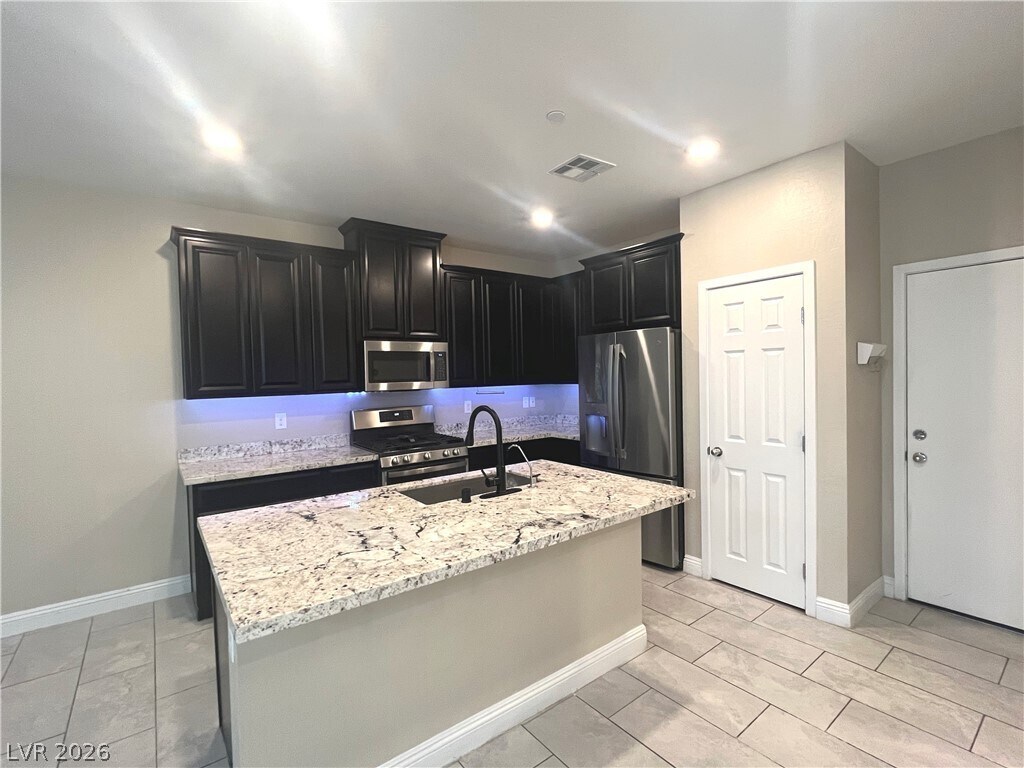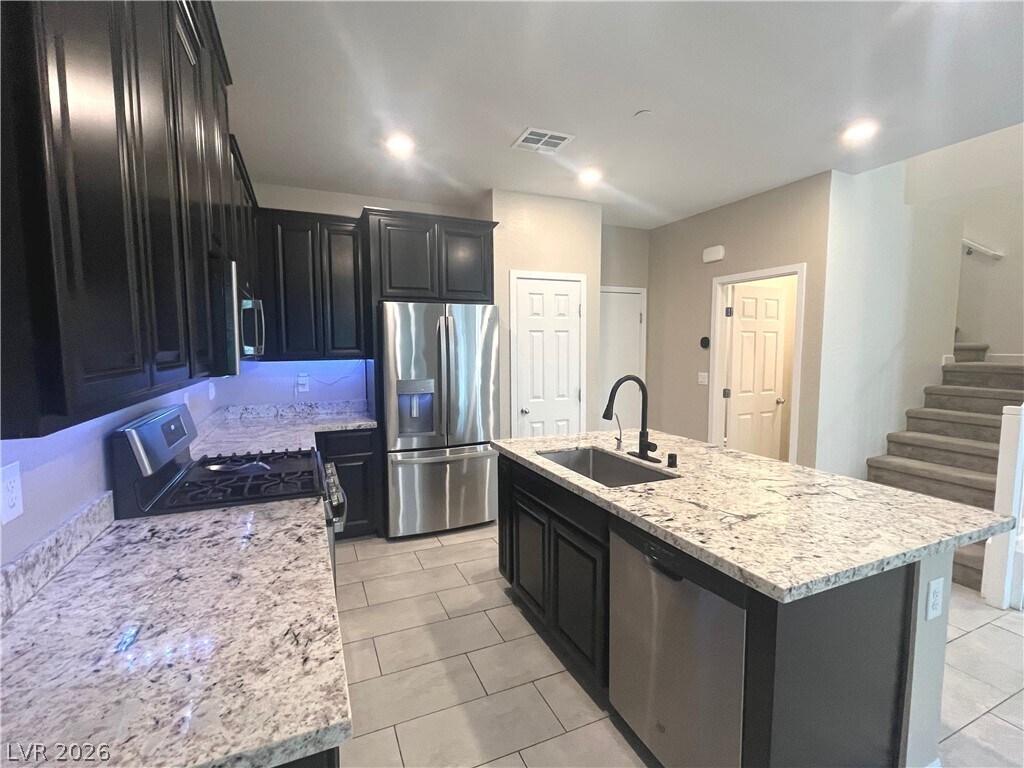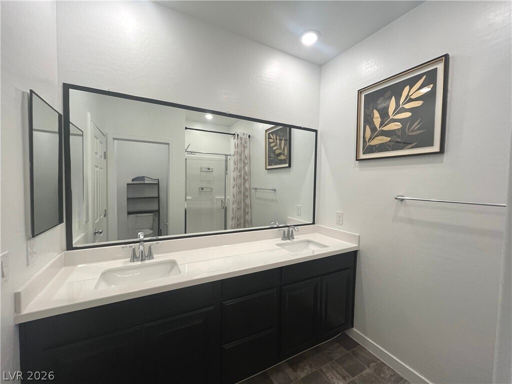 Stylish and move-in ready 2 bedroom (both primary w/own bath & walk in closets), 2 1/2 bath condo w/a 2-car attached garage in the heart of Henderson in gated community. This bright, open floor plan features a spacious open living area w/ceramic tile floors down & carpet up & a modern kitchen w/island w/breakfast bar, granite counters, espresso cabinets, SS applilances, ceramic tile floors, 2 tone paint and pantry w/ample counter space, ideal for everyday living & entertaining. Enjoy a private balcony perfect for morning coffee or evening relaxation w/string lights. Bed 1 w/built in cabinets, ceiling fan, blinds & curtains, accent wall, walk in closet, dual sinks & walk in shower. Bed 2 w/ceiling fan, blinds & curtains, dual sinks, tub/shower combo, walk in closet. Located in a well-maintained community with amenities including a community pool & park. Conveniently close to shopping, dining, parks, and freeway access.