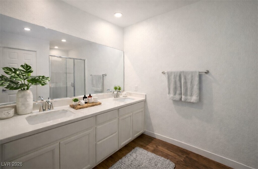 Remarks Stylish and move-in ready 2-bedroom condo with a 2-car attached garage in the heart of Henderson. This bright, open floor plan features a spacious living area and a modern kitchen with ample counter space, ideal for everyday living and entertaining. Enjoy a private balcony perfect for morning coffee or evening relaxation. Both bedrooms are primary suites, each offering an en-suite bathroom and walk-in closet, providing privacy and flexibility. Located in a well-maintained community with amenities including a pool, spa, and fitness center. Conveniently close to shopping, dining, parks, and freeway access.