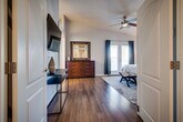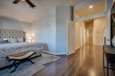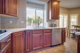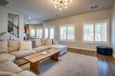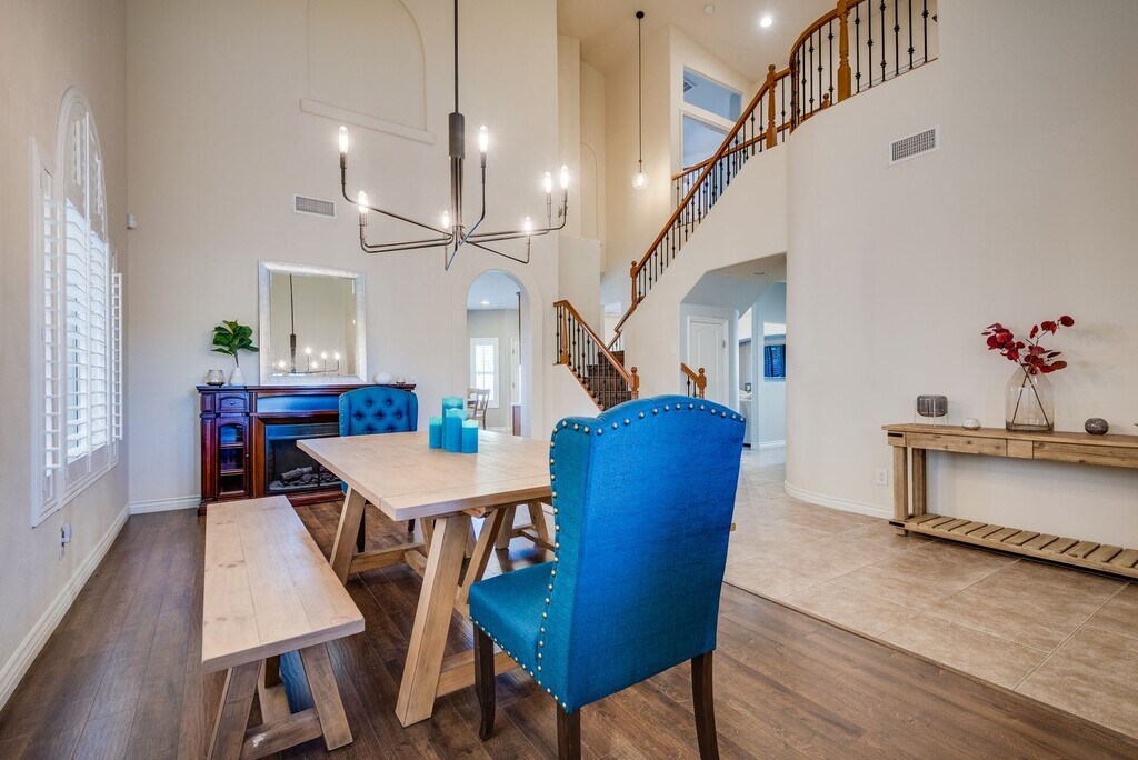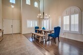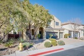 MOVE IN INCENTIVES AVAILABLE!! CALL TO INQUIRE!! Gated single family home with 4 bed 3 baths & 3 car garage in prime Henderson location. Covered entry opens to cathedral style dining room with wood-like flooring & open staircase with wood & wrought iron banister. Upgraded kitchen with tile backsplash, breakfast nook, and stainless steel appliances. Separate cozy family room leads to highly upgraded, spacious, rear yard with covered patio, fireplace, river walk and synthetic grass. Double entry to primary bedroom with vaulted ceilings, private balcony and en suite oversized bathroom with dual sinks, separate soaking tub, walk in shower and closet. Fourth bedroom can be an optional bedroom or office. Shutters & ceiling fans throughout.