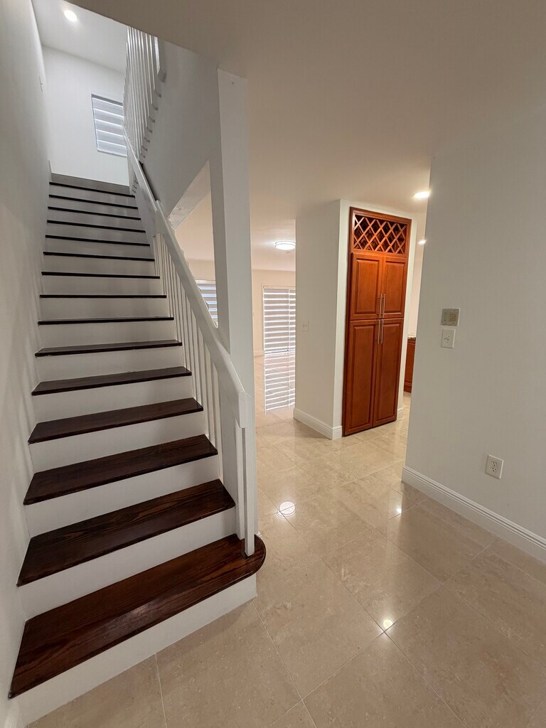 Beautiful two-story, 3-bedroom, 2.5-bath townhouse located in Cedar Landings within the highly desirable Hammocks community. This well-maintained home features recent upgrades including a fully updated primary bathroom and new flooring throughout the upstairs. The kitchen offers upgraded wood cabinetry, granite countertops, stainless steel appliances, and porcelain tile flooring. The layout includes a convenient half bath downstairs and two full bathrooms upstairs. Washer and dryer included. Enjoy a private, fenced backyard perfect for relaxing or entertaining. The home is equipped with accordion hurricane shutters and includes two assigned parking spaces directly in front of the unit. Just steps away from a scenic lakefront bike and walking trail. The Hammocks community offers exceptional amenities, including three pool centers, a gym, bike trails, four tennis courts, and complimentary fitness classes. Located in a great school district and close to hospitals, shopping centers, and more. Background and credit check required. First month, last month, and security deposit due at signing. No smoking. No soliciting.