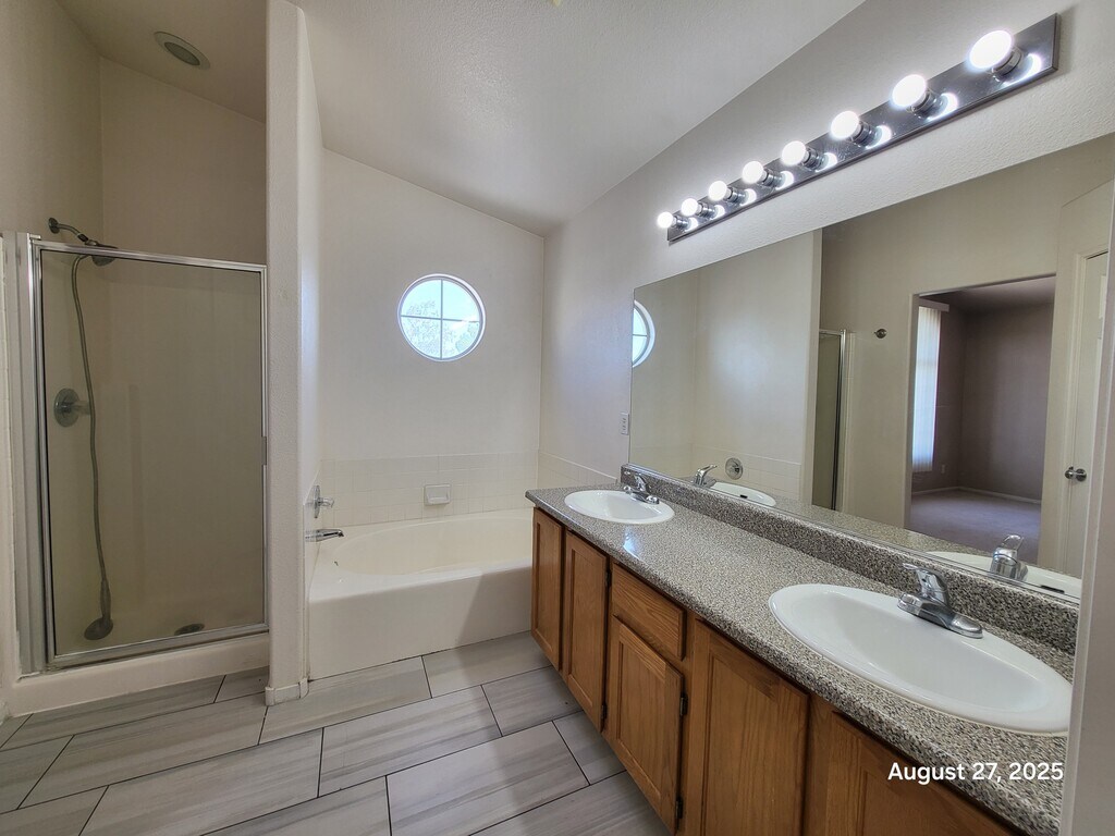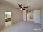 Welcome to this spacious two-story home located in a quiet cul-de-sac. Featuring 4 bedrooms + loft and 2.5 bathrooms, this property offers plenty of room for comfortable living. Open Layout: High vaulted ceilings in the living room create an airy, inviting space. Kitchen & Dining: Large kitchen with breakfast bar and open dining area, perfect for gatherings. Upstairs Loft: Versatile loft area ideal for an office, study, or entertainment space. Primary Suite: Oversized bedroom with walk-in closet, dual sink vanity, and private bath. Outdoor Living: Shaded patio with pergola and a private backyard with low-maintenance landscaping. Additional Features: Two-car garage, ceiling fans, and plenty of natural light throughout. Located near shopping, dining, parks, and easy freeway access—this home combines convenience with comfort. Single-Family