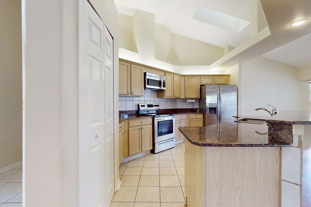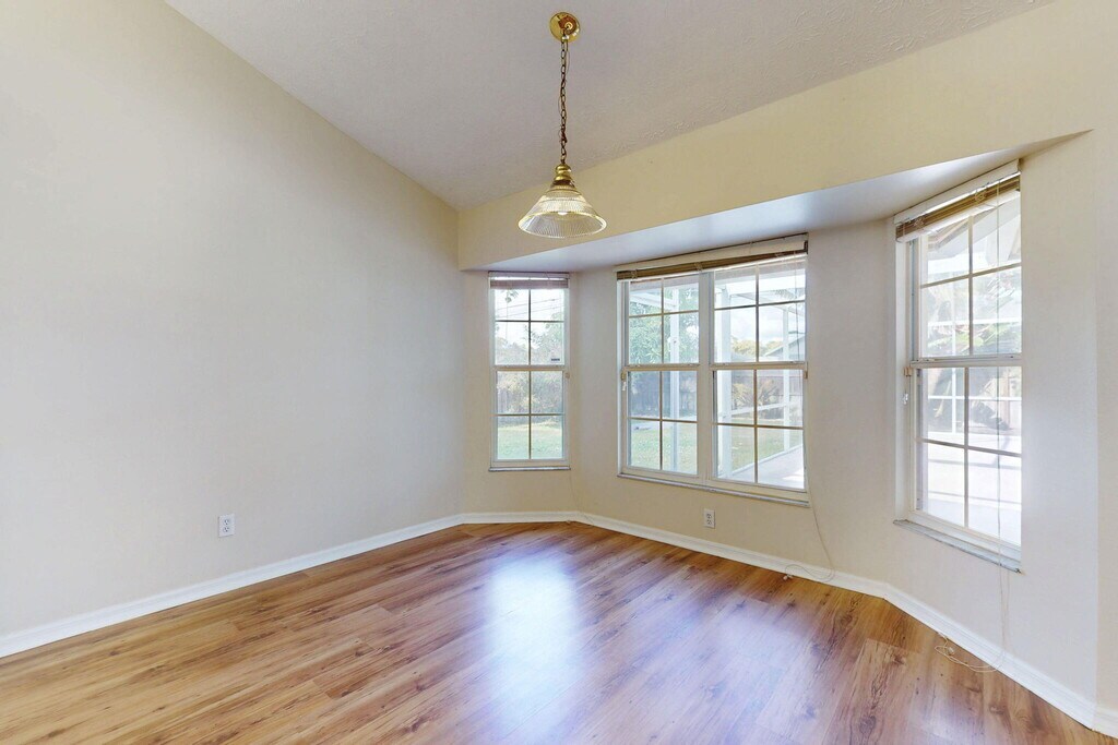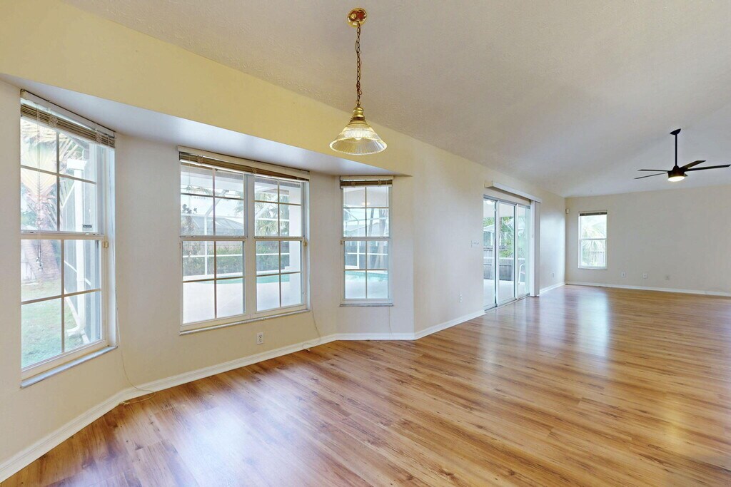 Fantastic CBS 3-bedroom,2-bathroom,2-car garage home featuring a screened pool,wood privacy fence,and an expansive patio. Enjoy the open split plan with vaulted ceilings,wood cabinets,granite countertops,and stainless steel appliances in the kitchen. The main area boasts wood laminate flooring,and the kitchen is illuminated by a skylight. The living room and dining room area overlook the pool,surrounded by lush landscaping and fruit trees. Rent includes lawn care,pool care,and maintenance. Dogs under 20 lbs are welcome (maximum of 2),but no cats allowed. MLS ID R11149600