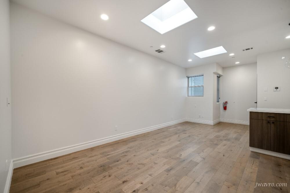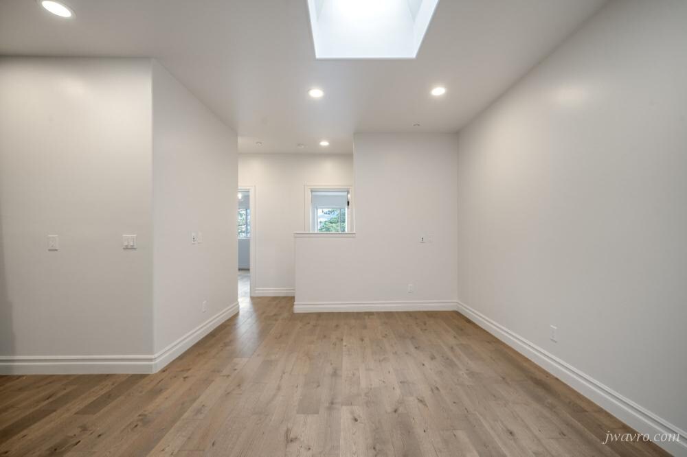 This top floor two bed two bath apartment has just been remodeled and is located at the back of a well maintained building, a stones throw away from Trader Joe's, Whole foods and some of San Francisco's best bars and restaurants on Polk Street as well as walking distance to downtown and Fidi~ Large two bed one bath apartment nestled at back of building - lots of natural light~ Super bright unit - two large sky lights~ Large living area flowing from kitchen~ Gourmet kitchen with stainless steel appliances, gas stove, refrigerator, microwave and dishwasher~ Kitchen bar~ Hardwood floors throughout~ One bathroom with modern finishes~ High ceilings~ Washer and dryer in unit~ Shared garden~ Water and garbage included in rent~ Security deposit is one month~ No pets, sorry~ Street parking only
