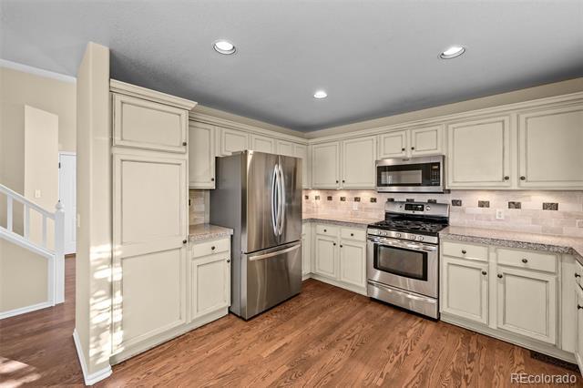 Located in a beautiful neighborhood in Highlands Ranch the home has a great porch in the front and back, and a fenced in yard which is connected to large open space. Highland Heritage Park is also near by! The house also has beautiful finishes throughout including NEW updates. You will find wood and tiled floors, granite counter-tops, white trim, and wood cabinets. On the first floor there is a living room, dining room, kitchen, pantry, bathroom. On the second floor there are three bedrooms, a bathroom, and the master bedroom which includes a gorgeous master bathroom and walk in closet. Then in the finished basement there is a large living area and plenty of closet and storage space. Also there is a two car connected garage. No washer/dryer included. The neighborhood is located off of S University Blvd so you will have quick and easy access to tons of restaurants, retail shopping, grocery stores and more! Access to all Highlands Ranch Rec Centers as well. Single Family Residence MLS# 8759654