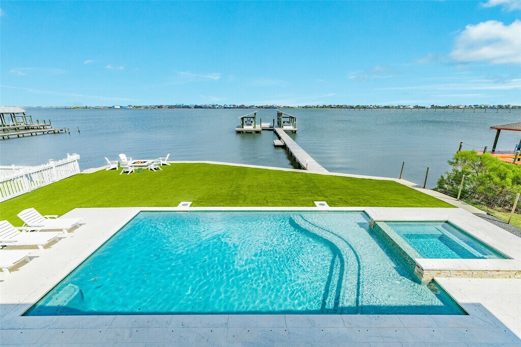 Incredible resort style Bay front 4/4/3+ home in sought after Crash Boat Basin. Showcasing designer touches thru-out home w/elegant coastal-chic decor & wood floors. Ground level has exceptional entertainment space w/full kitchen,commercial grade refrigerator,ice maker & range that flows to sparkling pool w/hot tub,covered dining,seating,fire pit,outdoor grill & grand double boathouse w/fishing pier. As you step inside home you will find breathtaking wall to wall waterfront views from the living & dining space w/dry bar that contains wine/beverage refrigerator & ice maker. Chef's kitchen w/Thermador gas cooking,double oven,ample cabinets & gorgeous waterfront views. Enjoy morning coffee & evening cocktails from the upper balcony. 1st level has spacious primary suite w/sitting area,walk in shower,soaking tub & soothing colors. 1st level also has 2 additional bedrooms & private office. Upper level with family room,built in bunk beds & full bath. Golf course & Evia nearby. MLS# 69089865