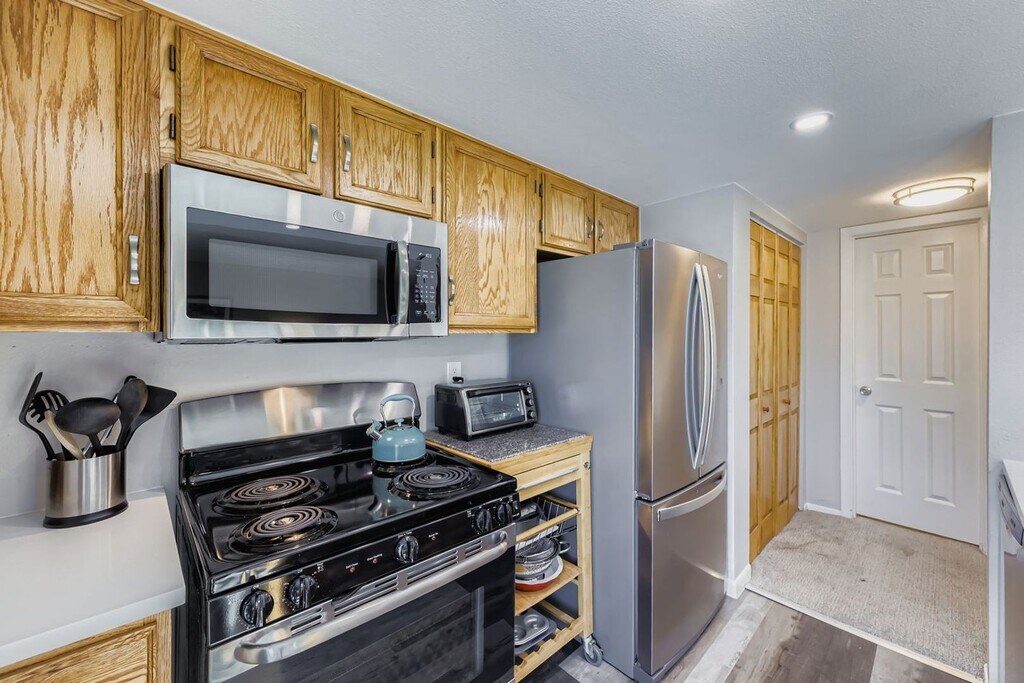 Experience effortless comfort in this bright and inviting furnished second-floor studio. Thoughtfully designed to maximize space, the home features cozy living anchored by a wood-burning fireplace, double doors that open to a spacious private balcony, and a large updated bathroom. Enjoy the convenience of an in-unit washer and dryer, stainless steel refrigerator, new flooring, a new water heater, and generous storage—including a substantial interior closet plus two additional exterior storage units. The community offers a covered entryway, well-maintained grounds, a seasonal pool and clubhouse, and ample guest parking. Water, trash, recycling, snow removal, and exterior maintenance are included for a truly turnkey experience. Perfectly located near both city and outdoor amenities: just 5 minutes to Standley Lake’s trails and recreation, 15 minutes to Olde Town Arvada via light rail, and 20 minutes to both downtown Denver and Boulder. A stylish, functional, and hassle-free furnished rental, ideal for comfortable living or an extended stay. This property comes fully furnished with all utilities and internet included. All kitchen supplies and linens are also included. For serious inquiries, please reach out to Ross at || Summer Rates (Mar - Oct) || - $2495 || Winter Rates (Nov - Feb) || - $1995 *Please note that if you are requesting during a month that is marketed available for the Winter that this scale will affect any months during your stay that fall in the higher month tier. Thanks in advance for your understanding. Per HB23-1099, a prospective tenant has the right to provide the landlord a portable tenant screening report, as defined in section 38-12-902(2.5), Colorado Revised Statutes; and if a prospective tenant provides the landlord with a portable tenant screening report, the landlord is prohibited from charging the prospective tenant a rental application fee; or charging the prospective tenant a fee for the landlord to access or use the portable tenant screening report. The portable tenant screening report must be provided to the landlord directly by the consumer reporting agency and can be no more than 30 days old.