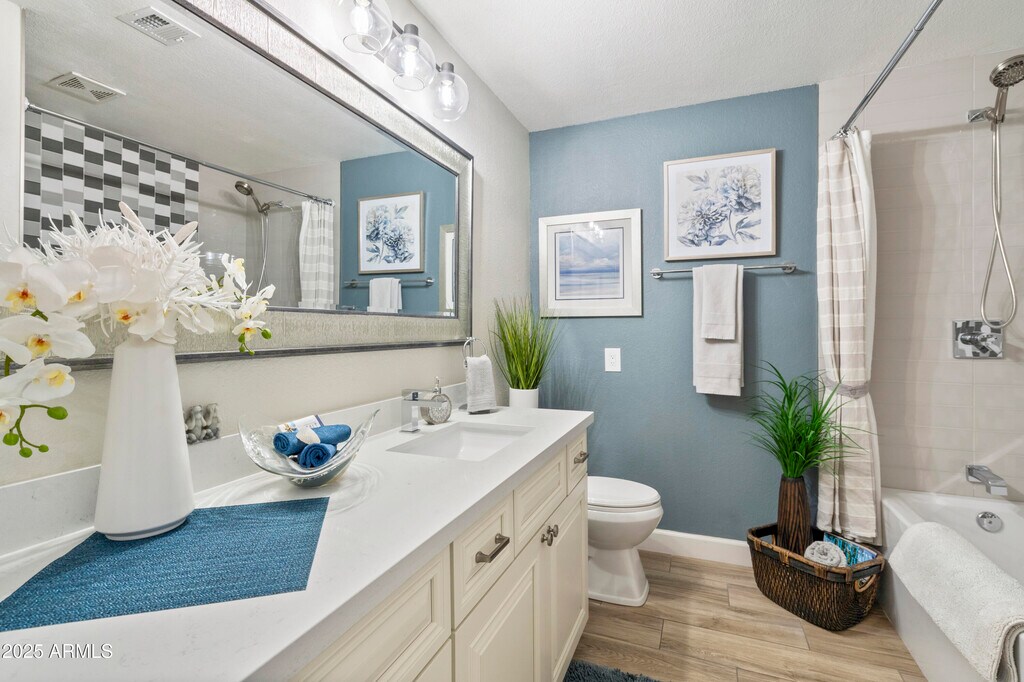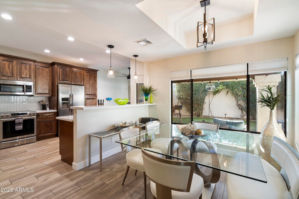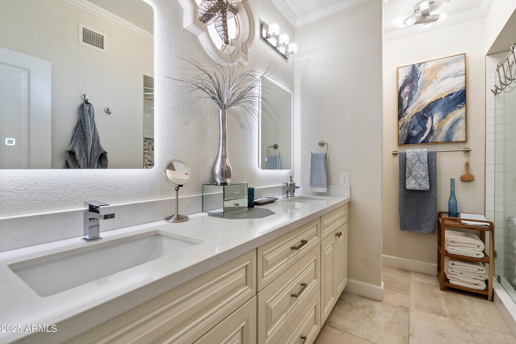 LUXURIOUS HOME in the Exclusive Gated Community of Suntree East,centrally located in the heart of Scottsdale Ranch. Move-in Ready,this Designers Personal Home is exquisitely remodeled with high end finishes,gorgeous modern Italian furnishings,beautiful artwork and abundant amenities. Enter through double front doors to soaring 12' ceilings and a surround of windows and sliding glass doors to the gorgeous super private back yard with covered patio,beautiful landscaping,lush turf and custom outdoor furnishings. Bright and open when desired or create a spa-like intimacy with the incredible detail to lighting and cozy decor throughout. Attached 2 car garage w/ storage. Enjoy the huge heated community pool and spa,lush parklike spaces with sidewalks and fantastic social events!