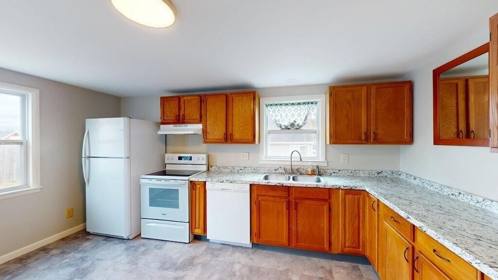 Step inside through the kitchen and you’ll find a bright, spacious area with updated countertops, plenty of cabinets, and room for a dining table. It’s a great space for everyday meals or catching up with friends. From the kitchen, head into the large living room filled with natural light — perfect for relaxing or entertaining. The first floor also includes the primary bedroom, a comfortable second bedroom, and a full bath for easy access. Upstairs are two more bedrooms with good closet space, offering plenty of room for family, guests, or a home office. The full unfinished basement provides lots of room for storage or hobbies. Outside, the sunny yard offers plenty of space for outdoor seating, grilling, or gardening. There’s also off-street parking for up to 4 cars. Located in South Nashua, this home sits in a neighborhood setting close to Rivier College, schools, shopping, and restaurants, with easy access to major roads for commuting. 1st months rent, Security Deposit and credit check required. MLS# 5069237