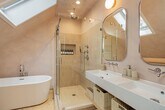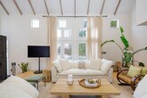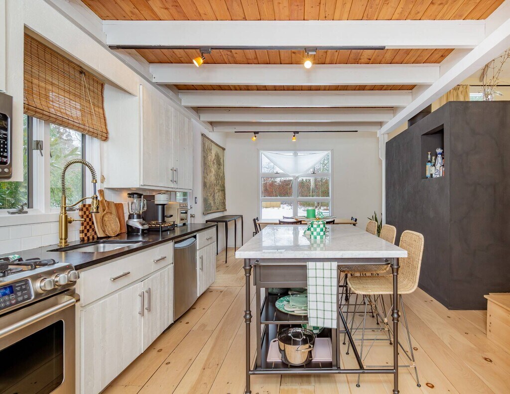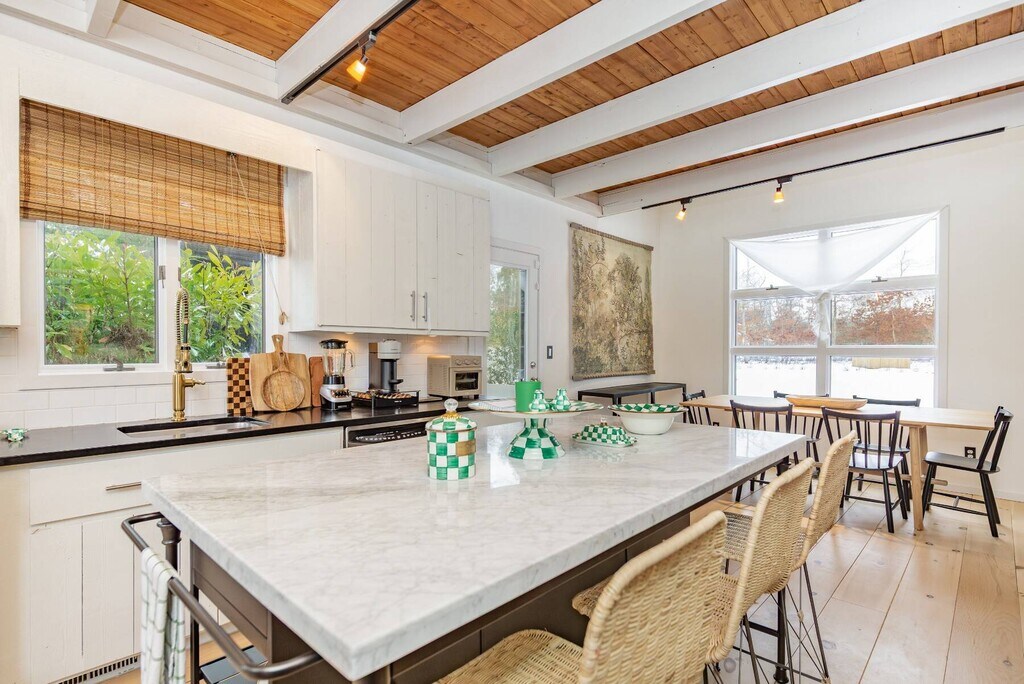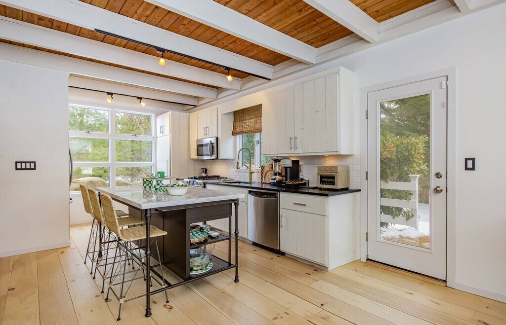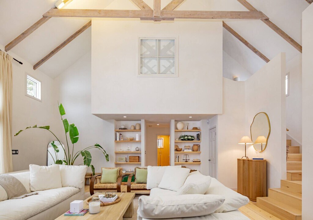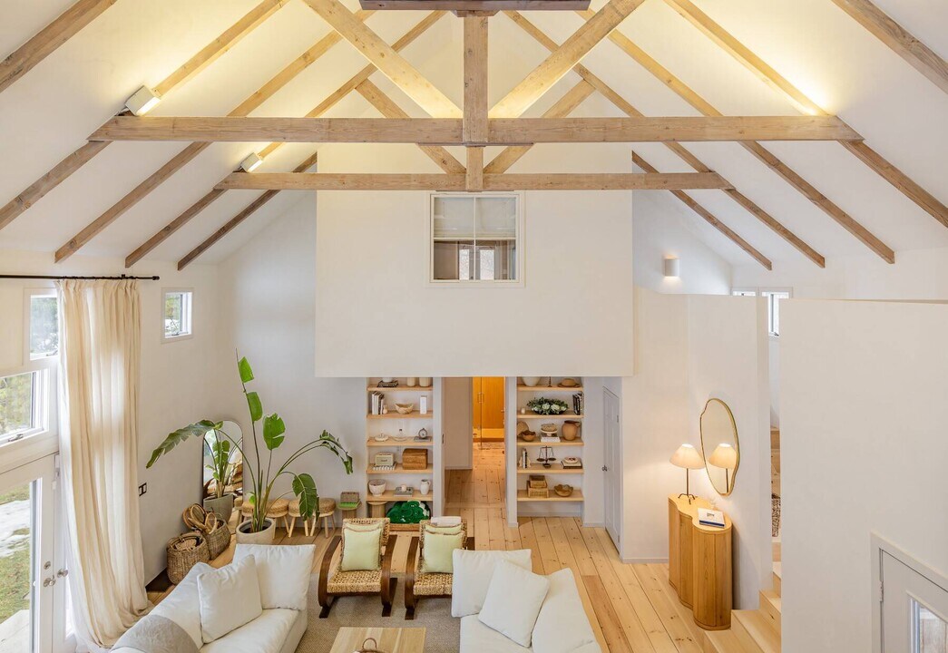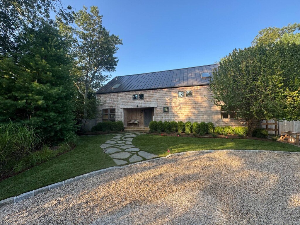 An architecturally distinguished modern barn, this three-bedroom residence offers a rare fusion of artistic design, refined finishes, and resort-level privacy. Set behind meticulously curated landscaping, the home presents a sculptural silhouette and interiors defined by soaring volume, gallery-like light, and a sophisticated contemporary palette. The main living spaces flow effortlessly to the outdoors, framing views of the property's lush grounds. A fully finished loft-ideal as a private office, studio, or additional lounge-elevates the home's versatility and provides a serene, sunlit retreat separate from the primary living areas. The backyard functions as a private resort, anchored by a pristine pool surrounded by native plantings that create a sense of seclusion and seasonal beauty. The outdoor living and dining areas offer elegant settings for both intimate relaxation and open-air entertainment. Perfectly positioned between Sag Harbor and East Hampton Village, the property allows equal access to luxury boutiques, acclaimed dining, marinas, and the Hamptons' most coveted ocean beaches. This is modern East End living at its most polished-where architectural artistry, privacy, and premier location converge. [[Rental Registration # 24-1449]] EH RR #: 24-1449 Rental Terms: June: $40,000 April: $30,000 May: $30,000
