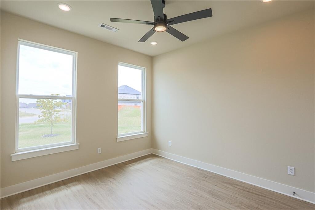 Be the first to reside in this gorgeous new construction home, located right across from Gamble Elementary. The home features an open kitchen with a spacious walk-in pantry, luxury vinyl plank flooring throughout the first floor, and custom kitchen cabinets that reach the ceiling. The main level includes two bedrooms and two full baths, while the second floor has two additional bedrooms, a full bath, and a game/bonus room—ideal for entertaining or a 5th bedroom. Home features nice upgrades such as quartz countertops, tiled showers, electric fireplace, custom trim for the fireplace wall, EV port and a gas drop for outdoor grilling. The kitchen has a big size island, custom cabinets and an oversized pantry. Near Gamble Elementary and Bentonville West High Schools. One year lease available. MLS# 1326439