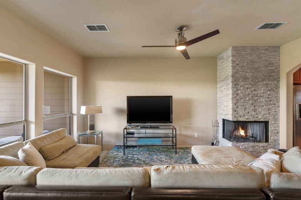Experience the ultimate Texas Hill Country retreat in this stunning, waterfront-adjacent townhome. Boasting 3 bedrooms, 2.5 bathrooms, and 2,258 sq. ft. of meticulously designed living space, this residence is perfectly positioned to capture unobstructed, panoramic views of the turquoise waters of Canyon Lake. Home Highlights: Gourmet Kitchen: A chef’s dream featuring granite countertops, sleek stainless steel appliances, a spacious breakfast bar, and custom cabinetry—all with a view of the water. Open-Concept Living: The expansive living area is anchored by a floor-to-ceiling stone masonry fireplace, perfect for cozy evenings. French doors lead you directly to a large covered back patio for seamless indoor-outdoor entertaining. Serene Master Suite: Located on the upper level for maximum privacy, the primary sanctuary features a private balcony overlooking the lake, a walk-in closet, and a spa-like en suite with a garden soaking tub and separate walk-in shower. Flexible Layout: Two generous secondary bedrooms offer plenty of space for guests or a home office, with one featuring its own private balcony access to soak in the Hill Country breezes. Premium Finishes: High ceilings, recessed lighting, and a blend of tile and wood-style flooring throughout ensure a modern, high-end feel. Exterior & Location: This home is designed for the outdoor enthusiast. Enjoy lake privileges and proximity to the Guadalupe River, with a low-maintenance lot that allows more time for the water. The attached 2-car garage provides ample storage for gear, and the property is just minutes from local dining, grocery stores, and the boat ramp. MLS ID 8347767