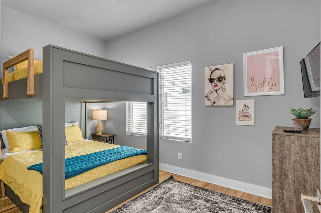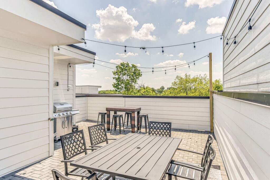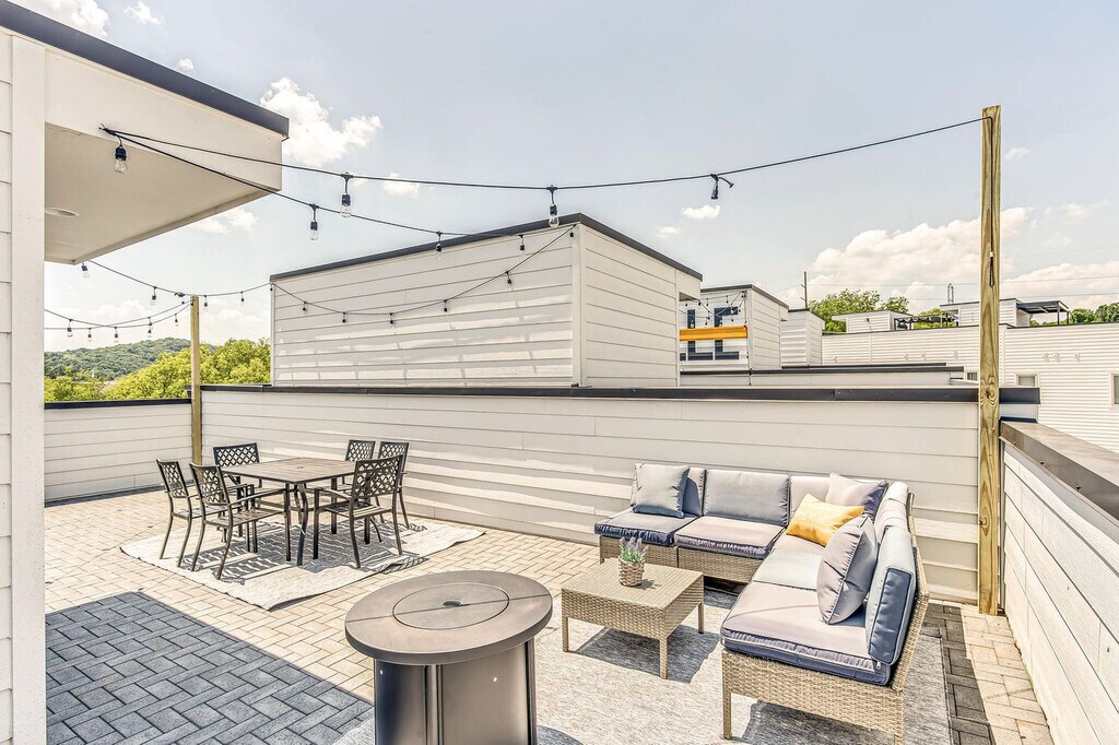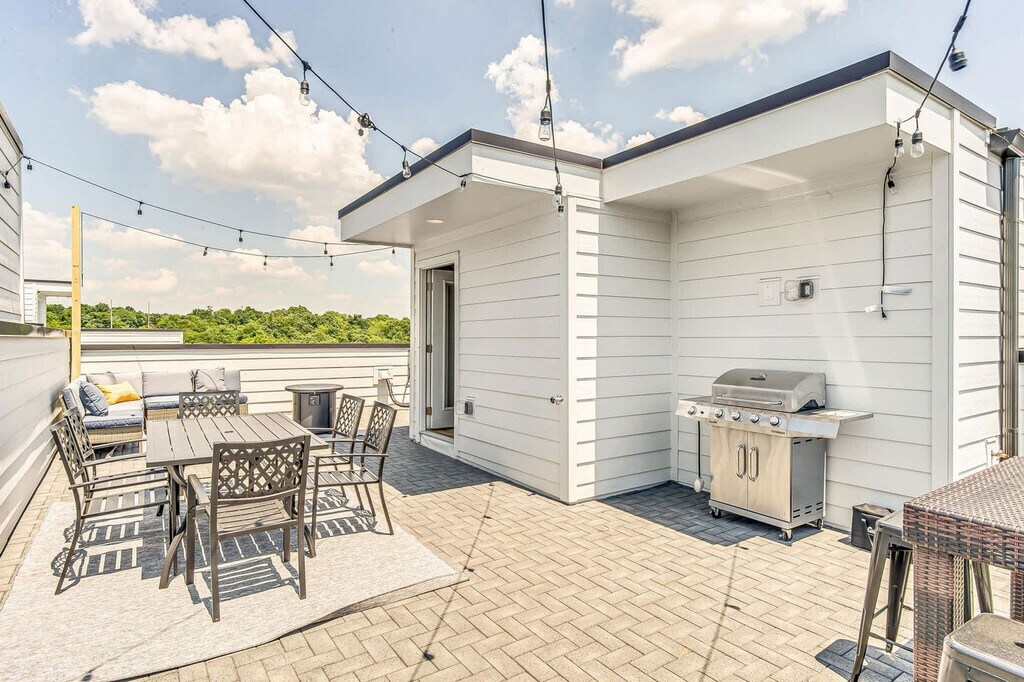 Feel at home in The Rooftop Record, a stylish Nashville retreat with four bedrooms and eight beds. This multi-level home is just 10–15 minutes from Broadway, offering the perfect blend of comfort, connection, and Nashville rhythm. This home features designer furnishings, Smart TVs in every room, and a chef’s kitchen fully equipped for family dinners or late-night snacks. The open floor plan keeps the conversation flowing between the kitchen, dining, and living room, perfect for entertaining. A washer and dryer are located on Level 3. Enjoy the private rooftop deck with lounge seating and a fire pit, a grill and outdoor dining area, high-speed Wi-Fi, fresh towels, linens, and kitchen essentials. Two-car garage parking is available, and free street parking is available. Located just minutes from downtown, this neighborhood blends local charm with easy access to the city’s top attractions. Explore nearby coffee shops, art galleries, and boutiques that capture the creative spirit of Music City. You’ll find everything from Southern comfort food to upscale modern fare just around the corner. This home puts you close to it all, where Nashville’s rhythm meets everyday convenience. Smoking is not allowed inside the property or near open doors or windows, and a minimum $500 fine applies for violations. Quiet hours are from 10 pm to 8 am on weekdays and 12 am to 8 am on weekends. Registration Number: [SI]