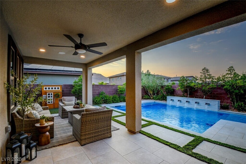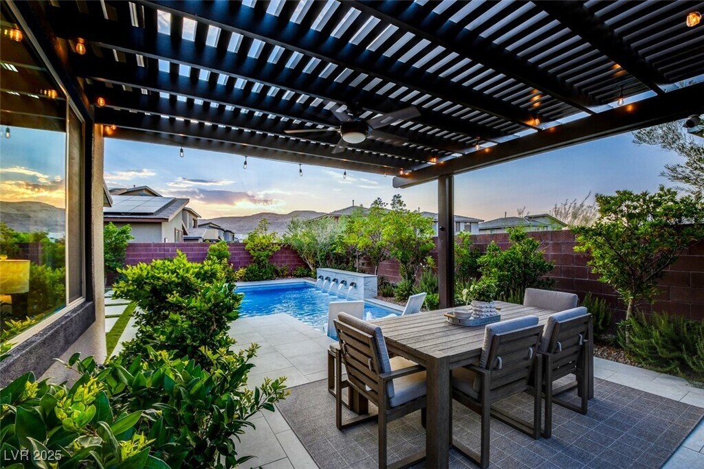 Fully furnished & move in ready! Step into designer living at its finest with this stunning custom home in the coveted South Summerlin Terra Luna community, where breathtaking mountain and city views set the stage for resort-style comfort. Offering 4 bedrooms, 3.5 baths, a versatile loft, and a private downstairs guest suite, this residence is thoughtfully appointed with elegant designer furnishings, multiple flat-screen TVs, and upscale finishes throughout. The chef’s kitchen boasts a spacious island, custom cabinetry, stainless steel appliances, and a walk-in pantry, while the expansive primary suite features sweeping views and a spa-inspired bath. Energy-efficient solar panels provide modern sustainability and lower utility costs. Outdoors, the private backyard is an entertainer’s dream with a sparkling pool, perfect for quiet relaxation or lively gatherings. Ideally located near top-rated schools, scenic parks, shopping, and dining. Experience luxury living at its finest!