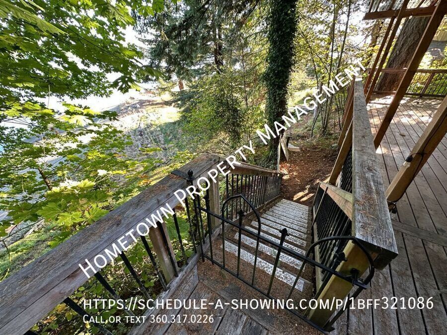 This cozy 2-bedroom, 1-bathroom rental offers breathtaking views of the Puget Sound, with access to the beach directly from the home. Enjoy the tranquility of your surroundings from the expansive covered deck, which wraps around the home, providing the perfect spot to unwind or entertain. Inside, the home features a warm, inviting atmosphere with a wood fireplace that adds a touch of rustic charm. The kitchen is fully equipped with modern appliances, including an electric stove/oven, microwave, dishwasher, and refrigerator, making meal prep a breeze. A washer and dryer are included "as-is" for your convenience. Two parking spaces are available, ensuring ample room for your vehicles. Tenants are responsible for purchasing salt for the well and maintaining the water filtration system, which needs to be refilled twice a month. Some tools and fireplace accessories will remain in the home, as left by the owner. Canoe and storage shed are not for tenant use. If you're looking for a peaceful, scenic retreat with easy access to modern amenities, this rental home is the perfect place to call your own. **NO SMOKING** Pets negotiable with monthly pet rent of $35 per pet. 12-month minimum lease. Great location, close to parks, shopping, and area amenities. 30 minute commute to JBLM. To schedule a no contact showing, call/text , or use the link below: