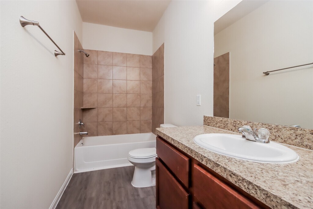 The Almond Plan is a beautifully designed two-story townhome featuring 3 bedrooms and 2.5 baths. The main bedroom,located on the first floor,offers added privacy along with a spacious walk-in closet and direct access to the luxurious main bath. Upstairs,you’ll find two generously sized bedrooms,each with their own closet,plus a full bath and dedicated laundry space. This home also includes a covered patio,an open-concept kitchen and living area,a two-car garage,and stylish wood-grain vinyl plank flooring throughout. All homes are SimplyMaintained for a $100 monthly fee that includes front and back yard lawn care and exterior pest control. Bavaria is a welcoming neighborhood conveniently located in Northeast Houston. Residents enjoy access to community amenities like a clubhouse,pool,and green spaces. The neighborhood features a variety of nearby conveniences,including grocery stores,dining options,and recreational facilities. MLS# 25765624