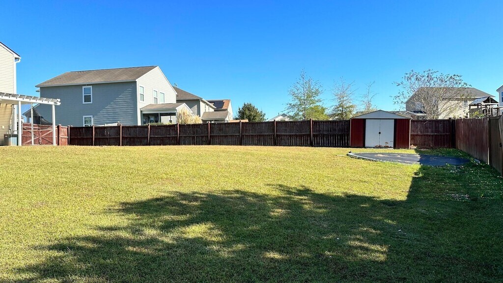 Explore this spacious and inviting 4-bedroom, 3-bathroom home at 9706 Tackle Street, Ladson, SC 29456. This property offers a wealth of desirable features for your comfort and convenience. Step inside to find a warm and welcoming living space complete with a cozy gas fireplace. The first floor includes one of the bedrooms and a full bath, perfect for guests or versatile living arrangements. Enjoy the ease of a 2-car garage and an additional paved parking spot, ideal for accommodating guests. The screened-in patio and charming pergola provide excellent outdoor spaces for relaxation and entertainment. A large backyard, complete with a storage shed, offers endless possibilities for outdoor activities and gardening. Plus, the washer and dryer are included for added convenience. This home has it all, combining practicality with comfort in a great Ladson location. Don't miss the chance to make it your own! Available for immediate move in.