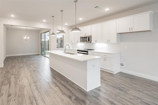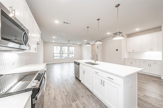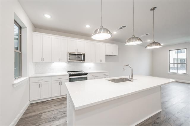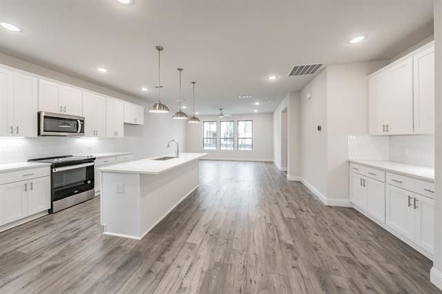 Elegant townhome in the New Lake Parc Village community that is located within minutes to the heart of Fort Worth's cultural district, museums, shopping, entertainment and restaurants! Desirable open floorplan design with spacious living room, light and bright kitchen and huge primary suite. Incredible island kitchen that features soft close cabinetry, stainless steel appliances, large granite island with breakfast bar sitting area, and walk in pantry. Relaxing and gorgeous primary bathroom has dual vanities with granite counters, custom cabinetry and walk in closet. Secondary bedrooms are great in size. Additionally the home has crown molding, recessed lighting, and a fenced in yard.