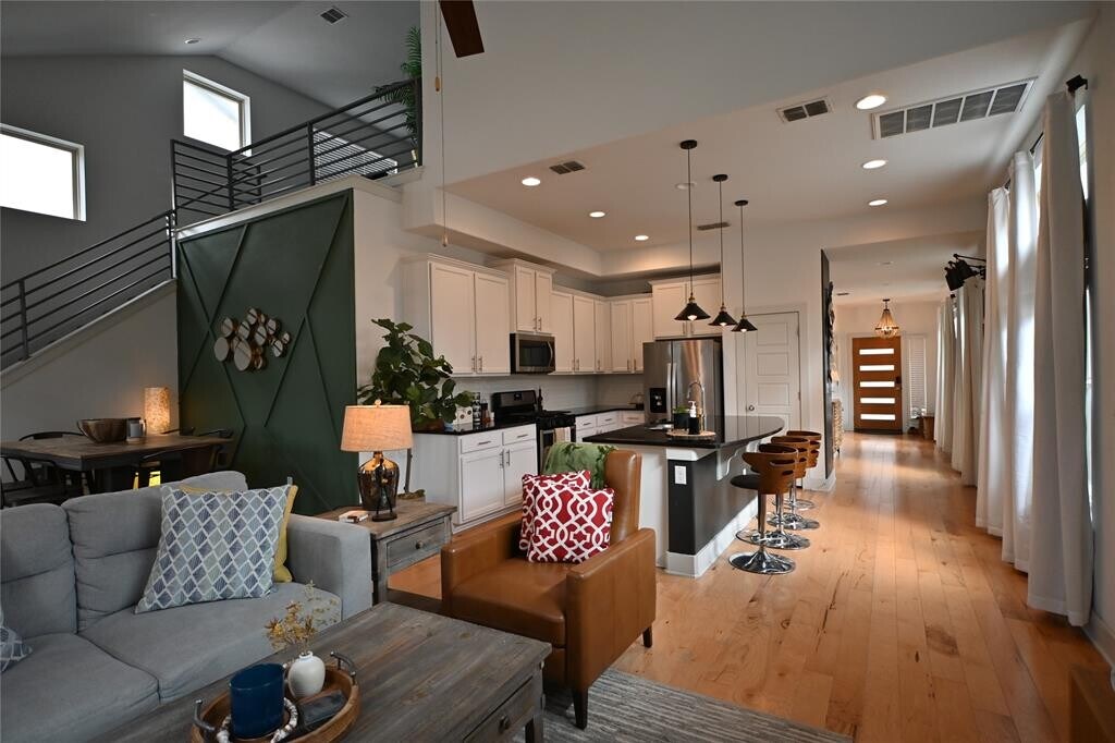 Live the convenient lock & leave lifestyle at Searight Village! Beautiful and convenient to S. 1st/Congress/Slaughter. Modern two-story features soaring ceilings, huge windows, awesome natural light and a huge kitchen island. 4 bedroom/2.5 baths, with amazing open concept and gameroom on the second floor. Gorgeous finishes: hardwood floors on the main level, granite countertops, recessed lighting, and 42†cabinets. Gently lived in. Ready for immediate move in.