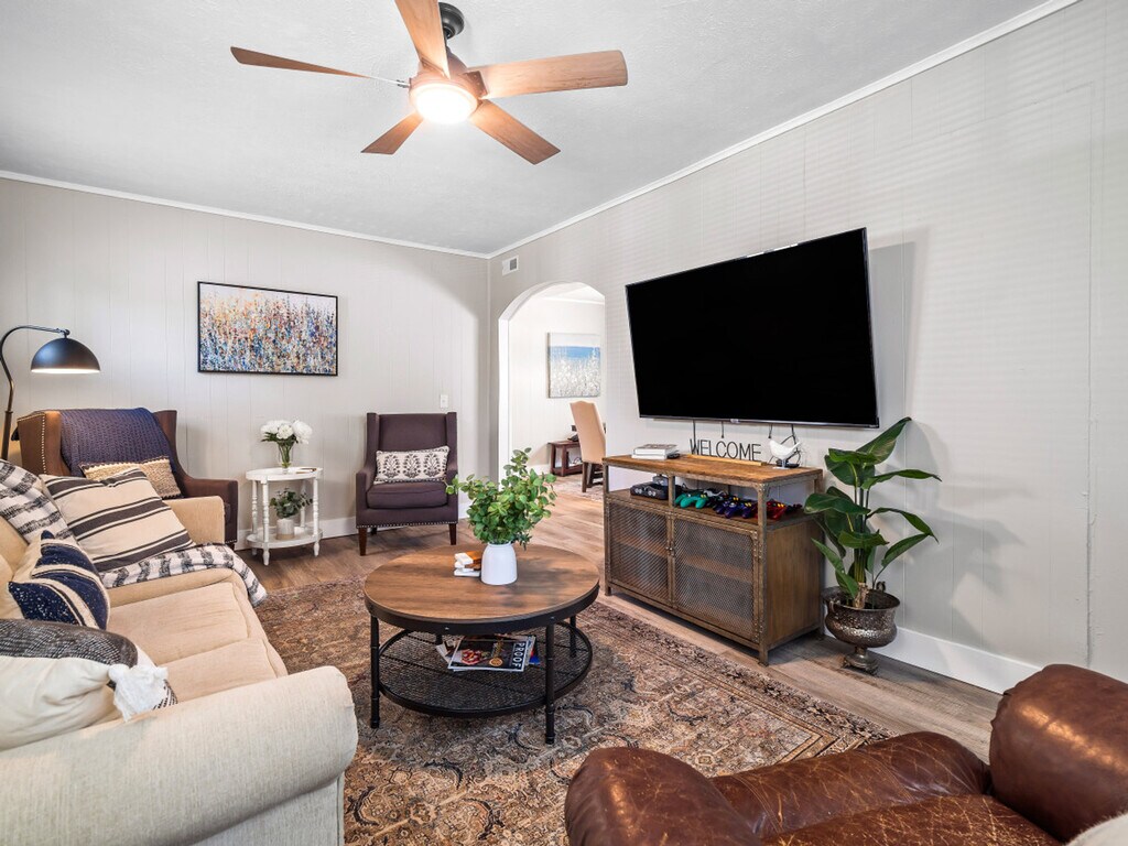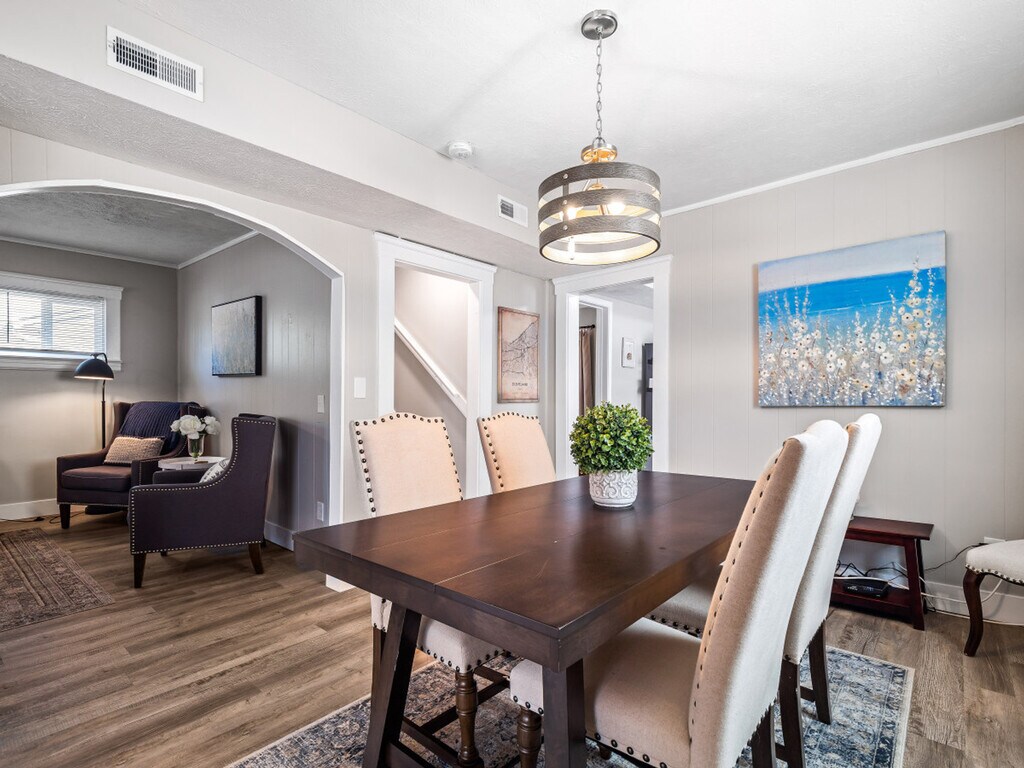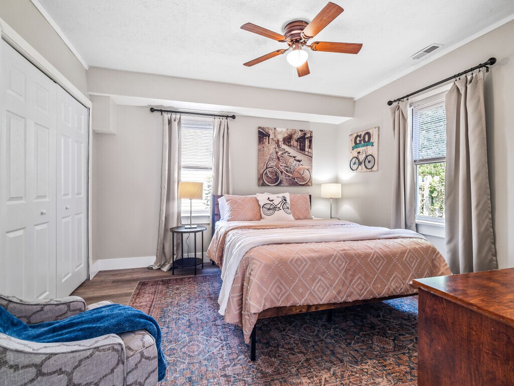Relax at this peaceful home, just a 2-minute walk to Lake Erie, stylishly decorated and stocked with amenities for a comfortable stay. Nestled in a quiet neighborhood, this home is right between the lake and lots of activity, offering a perfect balance of tranquility and excitement. A maximum of 2 dogs are allowed for a flat fee of $125 per stay. Requests to bring a 3rd or 4th dog are subject to approval and will incur an additional $100 fee. Undisclosed pets will result in a $150 fee and may lead to reservation cancellation without refund. No cats are allowed to protect guests with allergies. Take advantage of the fenced-in backyard for your pup and venture out to explore Cleveland. The home is only a short walk to multiple lakefront parks, providing ample opportunities for outdoor activities. The home has decibel readers that track noise levels outside, and there is a $500 fine for excessive noise levels between 10pm and 8am. No indoor smoking is allowed, with a minimum $500 charge for extra cleaning. Smoking outside is permitted. No underage consumption or drugs are allowed, and no parties or large gatherings are permitted. You will be charged $150 for late checkout without prior notice. Guests are responsible for refilling the propane tank if needed for the grill, but reimbursement is available with a receipt. While a small list of checkout instructions is provided, they are not mandatory but appreciated. [SI]